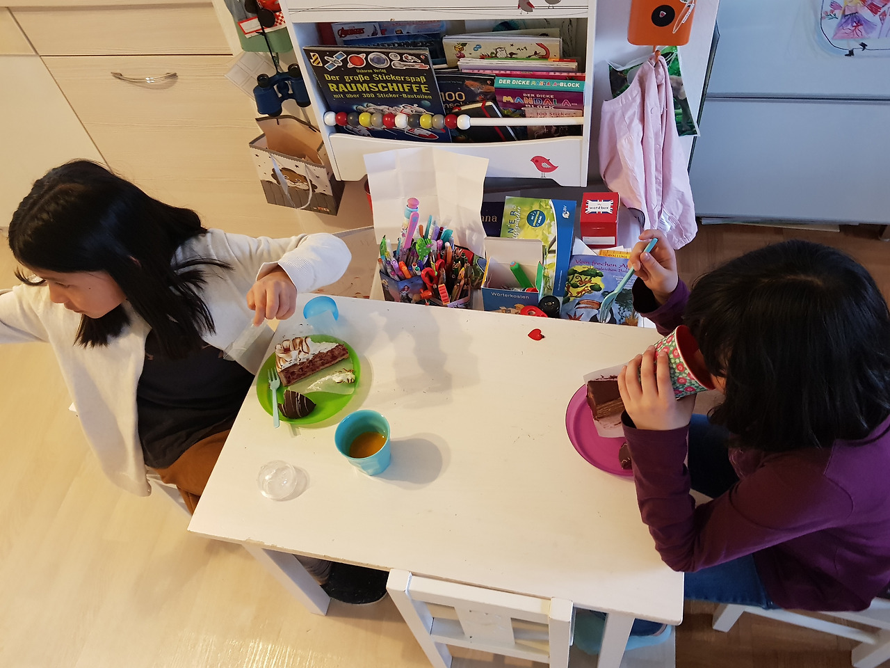 오후 5시 반에 초인종이 울렸다. 아이가 다시 돌아올 리도, 남편이 이렇게 일찍 퇴근할 리도 없는데. 1층 출입문 벨을 눌러주고 현관문을 열어놓고 기다렸더니 뜻밖에도 린다였다. 그제야 생각이 났다. 화요일 독일어 수업 때 요즘 새로 일하는 케이크 전문점에서 조각 케이크를 가지고 오겠다 했었지. 그런데 전날 가게 케이크가 다 팔리는 바람에 못 가져왔다고 엄청 미안해했었다. 난 괜찮은데. 수요일 퇴근할 때 몇 개 가져다주겠다고 하더니 일곱 조각이나 들고 왔다. 당일 먹어야 맛있다며. 반갑게 맞이하고 고맙게 받았다. 린다의 얼굴이 기쁨에 가득 차 있었기에.