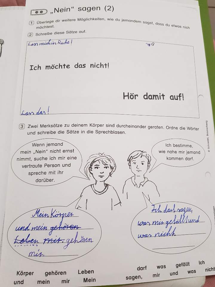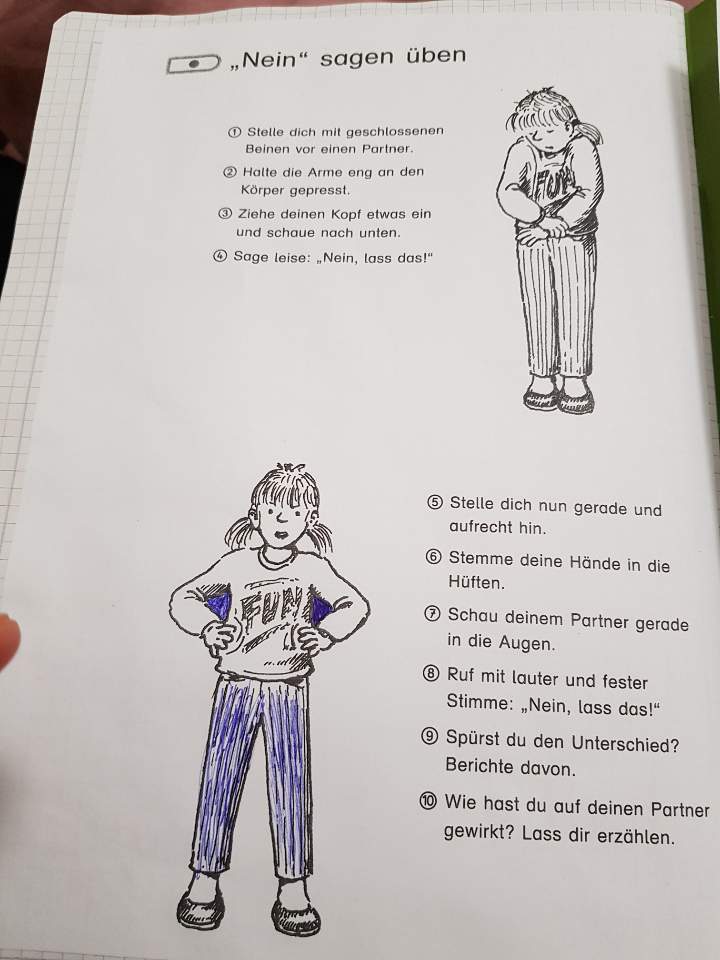 불쾌한 말과 행동에 대해 '싫어요! 하지 마세요!' 라고 당당하게 말하도록 가르치는 독일의 사회 과목.