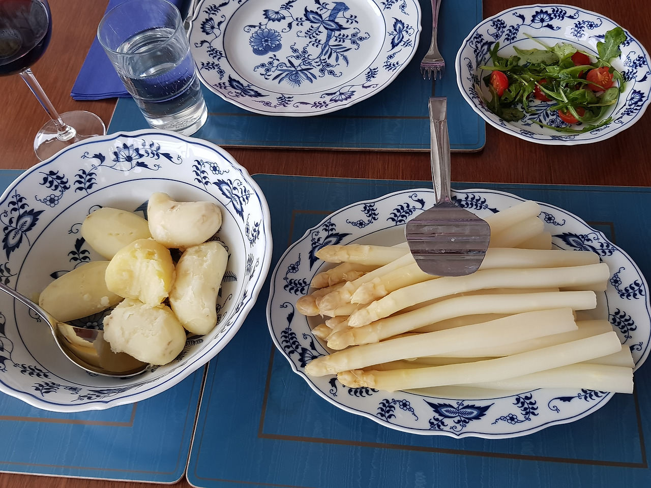 독일의 제철 봄 음식은 역시 슈파겔이다. 연어와 삶은 감자와 같이 먹어도 맛있다. 레드 와인 한 잔도 빼놓을 수 없지.