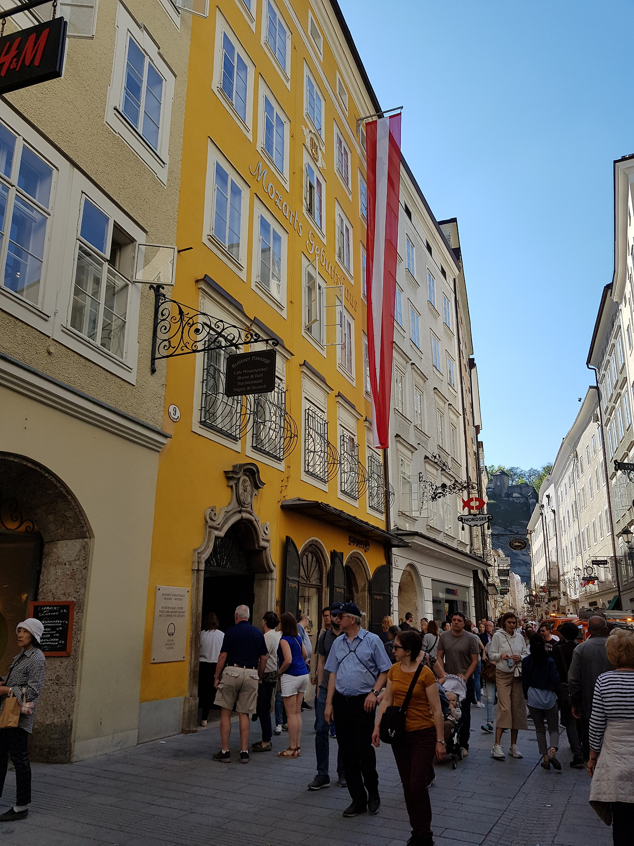 잘츠부르크는 강을 사이에 두고 북쪽이 부자 동네고 남쪽이 가난했던가 봐요. 잘츠부르크 중앙역에서 버스를 타고 강 근처까지 오자 다리 앞에 모차르트가 살던 집인 모짜르트 레지던스 Mozart-Wohnhaus 가 있었어요. 모짜르트가 17년 동안 살던 생가 Mozarts Geburtshaus는 다리 건너편 남쪽에 있고요. 모차르트의 생가가 있는 곳은 구시가지랍니다. 시가지가 무척 아름답다는 얘기는 들었으나 다음 기회로 미루었어요. 애 데리고 다니기가 쉽지가 않더라고요.