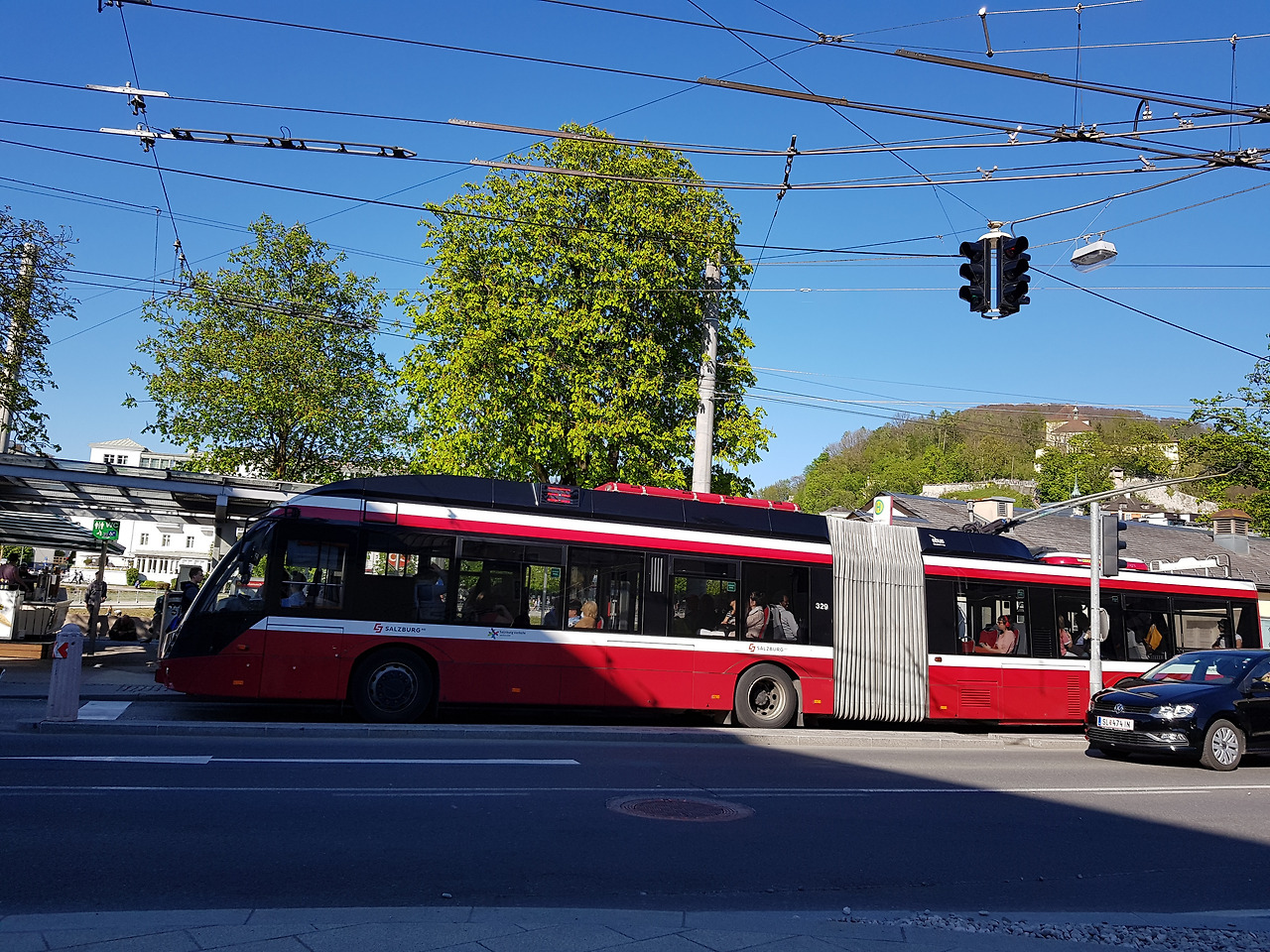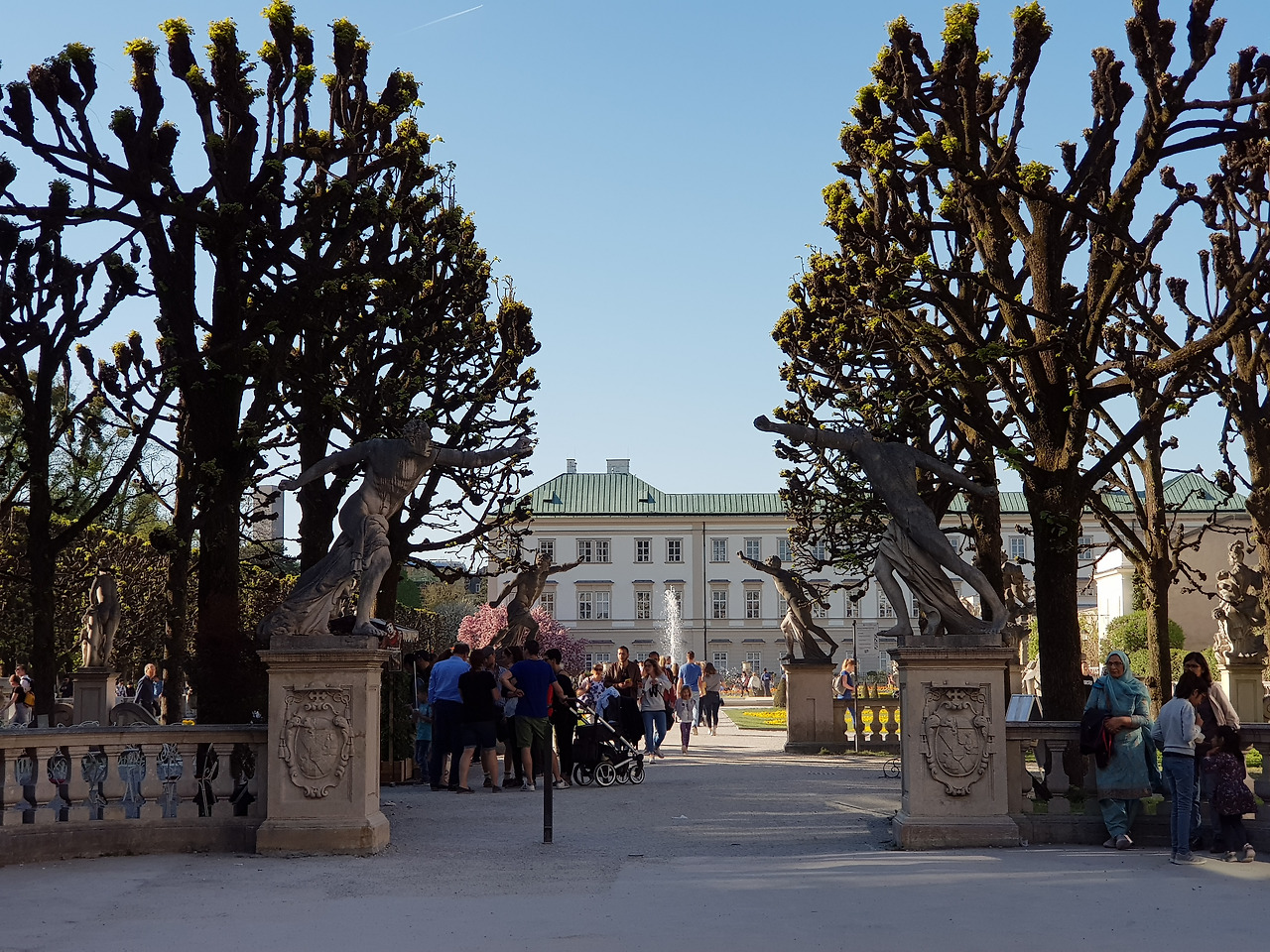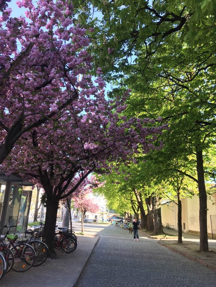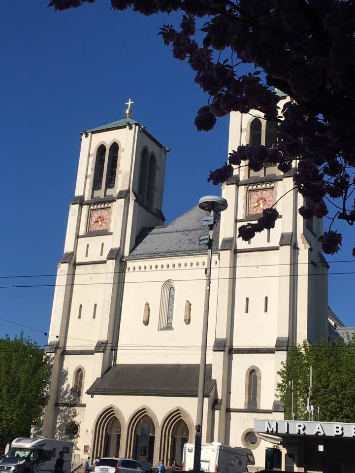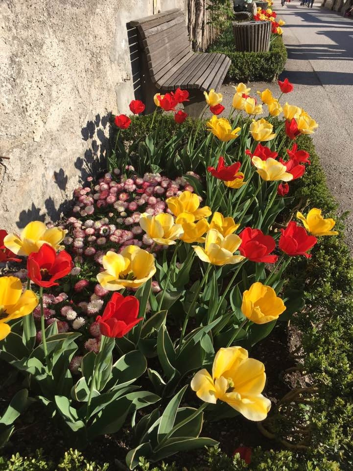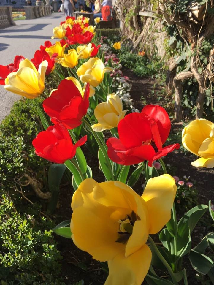 잘츠부르크 중앙역에서는 트람으로 이동했는데, 역 바로 앞이 정류장이라 이동이 쉬웠어요. <사운드 오브 뮤직> 촬영지로도 유명한 미라벨 궁전 정원은 모차르트가 살던 집 맞은편에 있답니다. 출구 쪽에 서 있던 <사운드 오브 뮤직> 차량도 신기했어요. 그런데 미라벨 궁전의 화려한 정원보다 더 저의 시선을 끈 것은 핑크빛으로 만개한 미라벨 궁전 앞 도로의 왕겹벚꽃 나무들이었어요. 얼마나 황홀한지 한동안 눈을 뗄 수가 없었죠. 마치 잘츠부르크에 봄꽃 구경을 온 것 같았어요.
