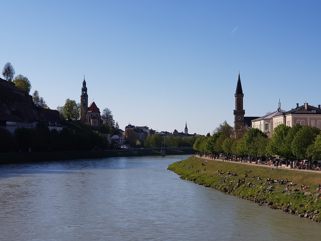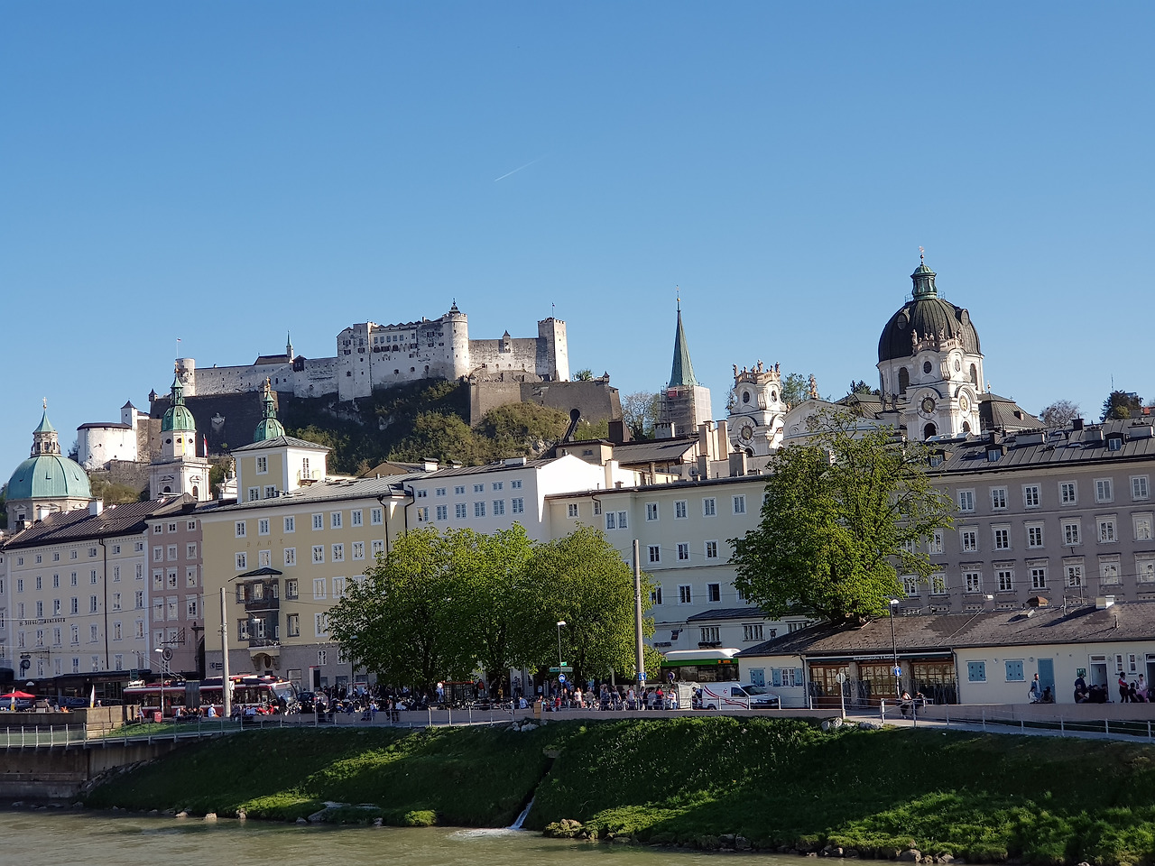 뮌헨에서는 바이에른 티켓(왕복 25유로/잘츠부르크 시내 교통비 포함/어린이 무료) 하나로 다녀올 수 있어서 좋았어요. 뮌헨 중앙역에서 기차로 1시간 40분 정도 걸린답니다. 기차에서 앉아 가려면 뮌헨 중앙역에 조금 여유 있게 도착하는 게 좋고요. 4월 중순을 지났을 뿐인데 잘츠부르크는 여름 날씨였어요. 이번에는 모차르트만 보고 오겠다 생각했죠. 알리시아가 음악 시간에 배운 세 작곡가 중 한 명이 모차르트였거든요.