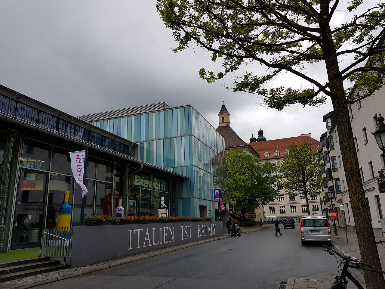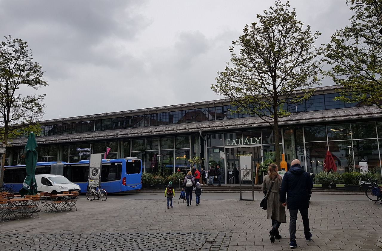 레스토랑/카페/슈퍼/책방/와인 창고가 있는 토탈숍 이탈리 Eataly. 왼쪽은 빅투알리엔 시장, 오른쪽의 붉은 지붕/노란 건물이 아이 학교다.