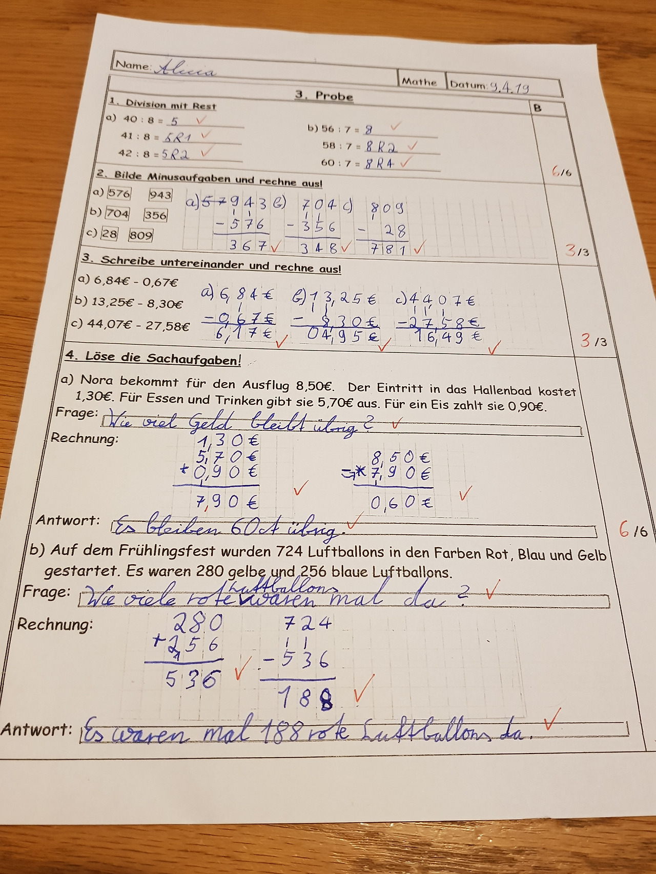 독일 초등 3년 수학 시험(위) 초등3학년 독일어 시험(아래) 틀린 독일어 문제를 카드 색인에 기록하며 열공하시는 우리 집 어린이.