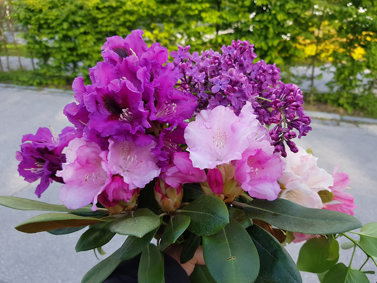 오른쪽 위 보랏빛 꽃들이 남의 정원에서 꺽은 라일락