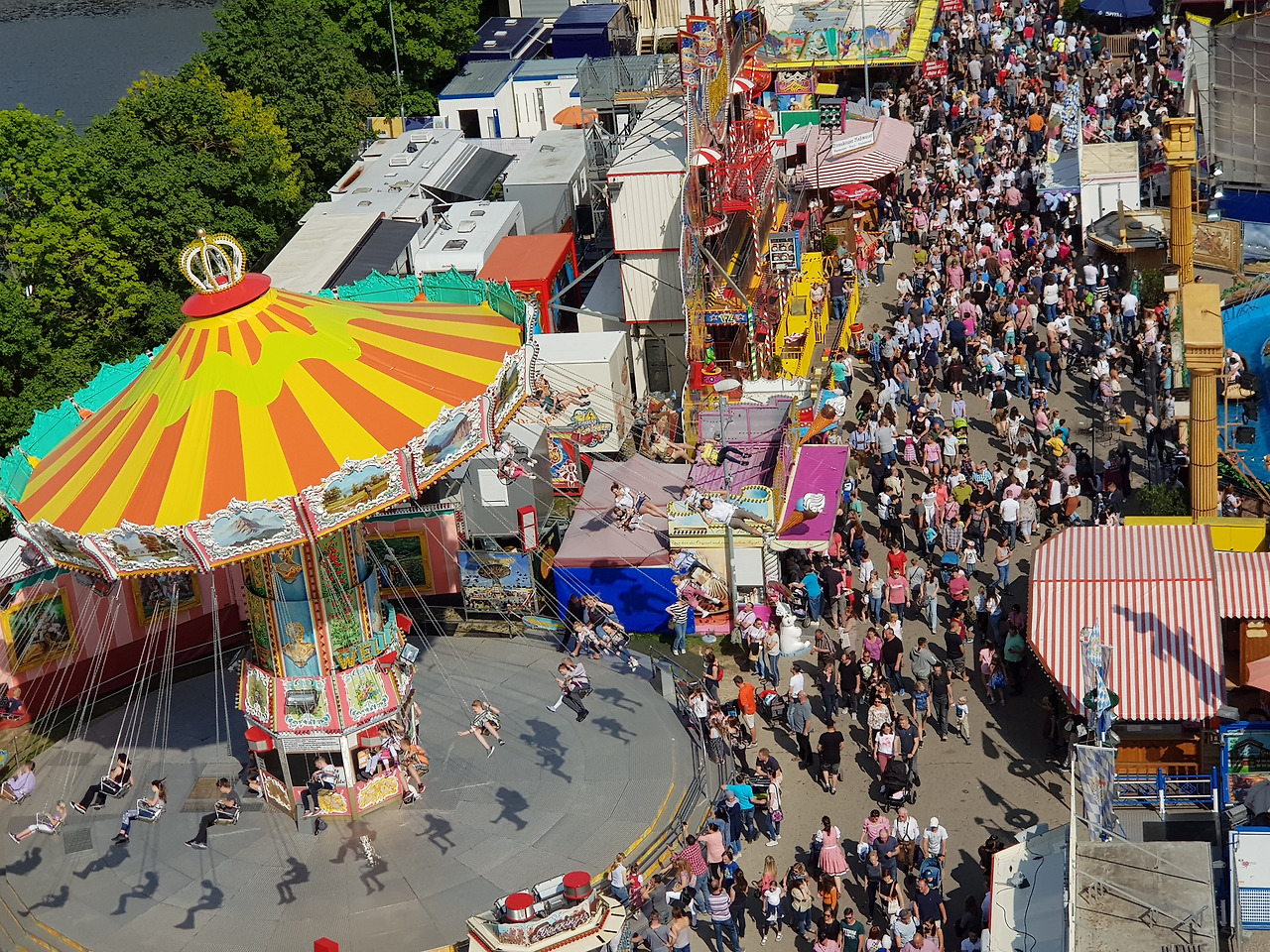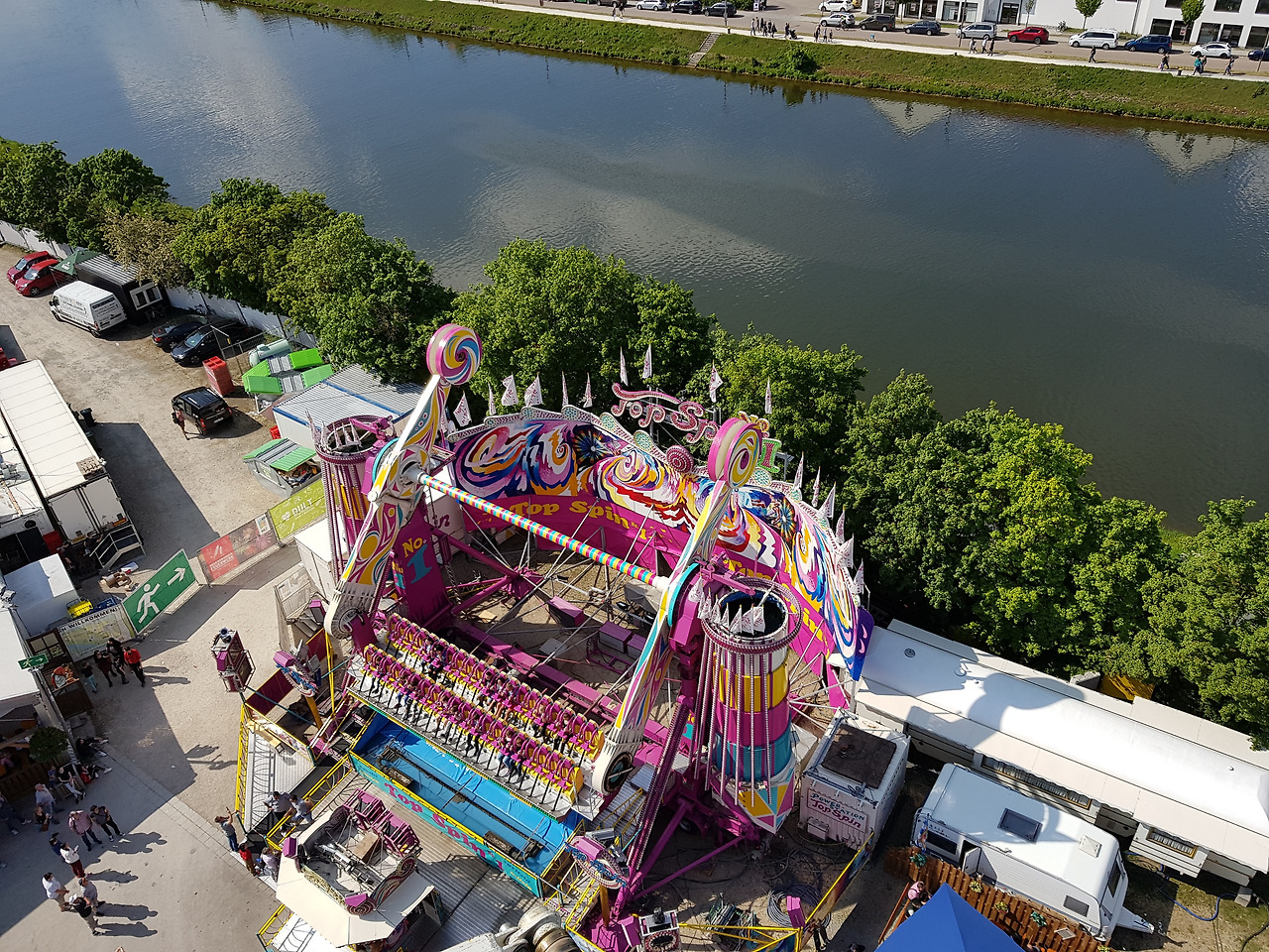 우리는 그날 레겐스부르크 봄축제인 레겐스부르크 둘트 Regensburg Dult에 갔다. 1년에 두 번 봄가을로 열리는 축제인데 20년 가까이 그런 축제가 있는지도 몰랐다니. 놀이기구도 타고 맥주도 마시는 작은 옥토버 페스트라고 생각하면 되겠다. 바이에른 전통 복장인 던들 드레스와 가죽조끼와 가죽 반바지 차림이 많이 보였다. 새어머니와 남편과 아이와 나 넷이 함께 런던 아이 놀이기구 The Star Flyer를탔다. 워낙 천천히 위아래로 도는 기구라서 나 같은 놀이기구 젬병들도 쉽게 탈 수 있었다.