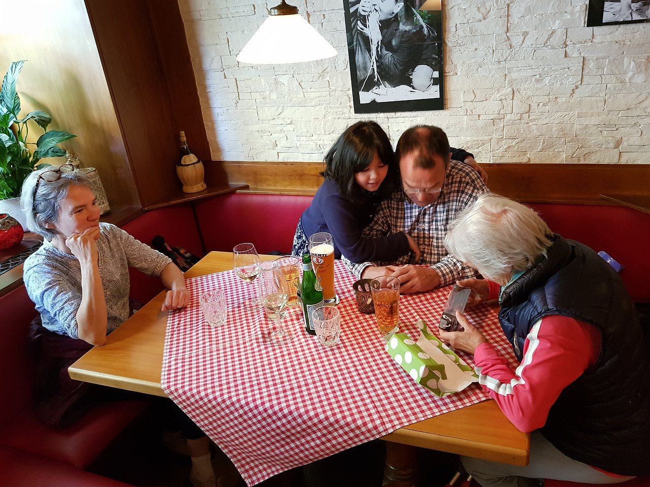 점심은 가는 길에 어느 소도시에서 먹었다. 나무랄 데 없이 작고 예쁜 곳이었다. 우리는 한적한 곳에 차를 대고 좁은 골목길들을 걸어 광장으로 향했다. 시어머니의 차 안에 있던 도로 가이드북에서 미리 검색했던 레스토랑은 손님이 별로 없었다. 맞은편의 이태리 식당에는 손님이 많았다. 우리도 이태리 식당에서 점심을 먹었다. 시어머니가 수술을 무사히 마치시고 다시 걸으시고 다 함께 식사를 하고 있다는 안도감은 맛있는 음식과 만나 두 배의 즐거움이 되었다. 오후의 커피는 다른 소도시에서 마셨다. 시아버지와 함께 두 분이 오래전에 10년 동안 휴가를 오시던 곳이라 했다. 한적한 소도시의 정원이 딸린 카페에서 가진 오후의 티타임. 시어머니는 옛날 카페 여주인과 담소까지 나누셨다.