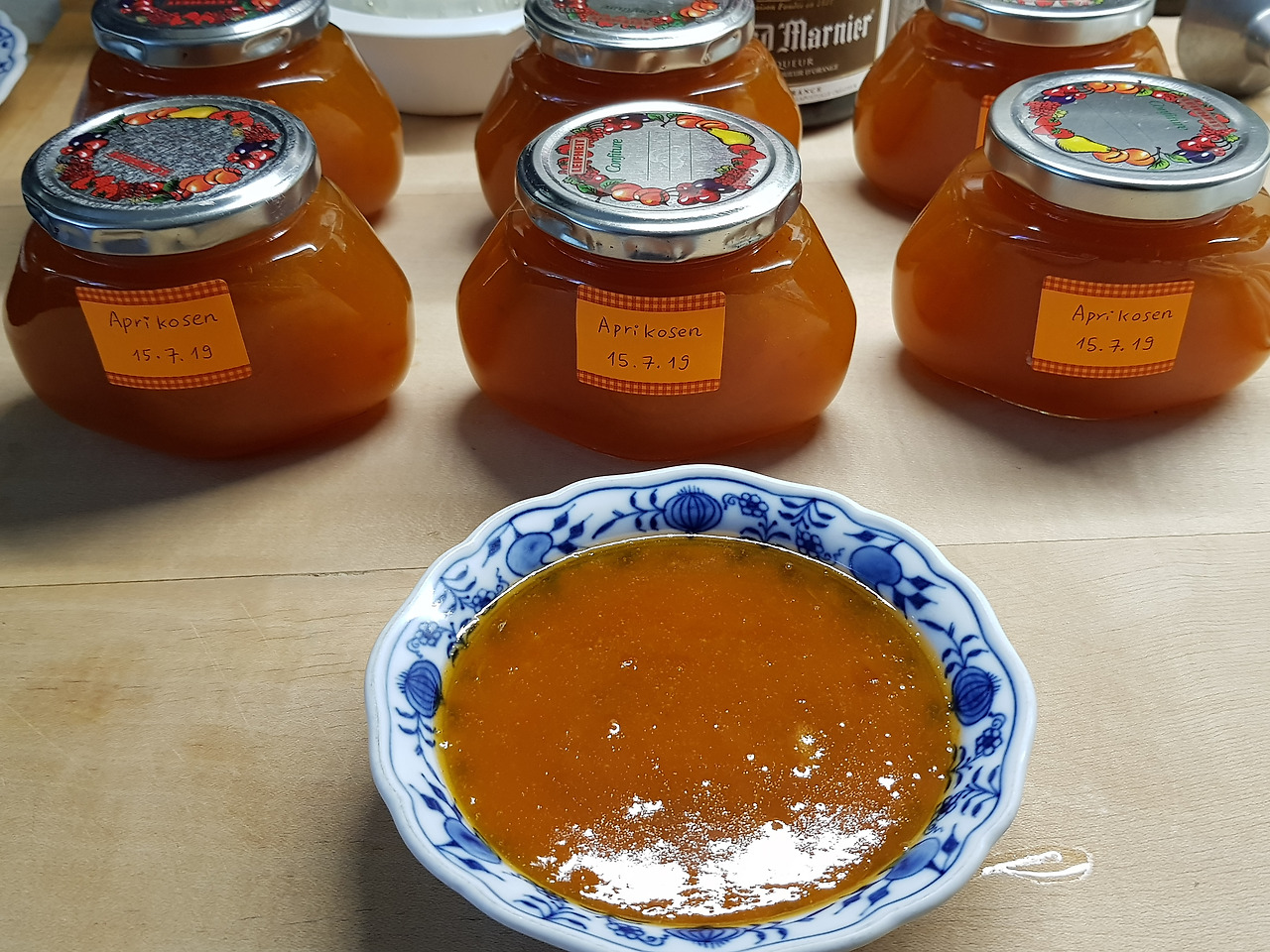 라벨에 제목 쓰기는 나의 유일한 일! 어머니의 마멜라데 시크릿은 각각의 마멜라데에 들이붓는 저 한 잔의 슈납스(소주 같은 술)!!!