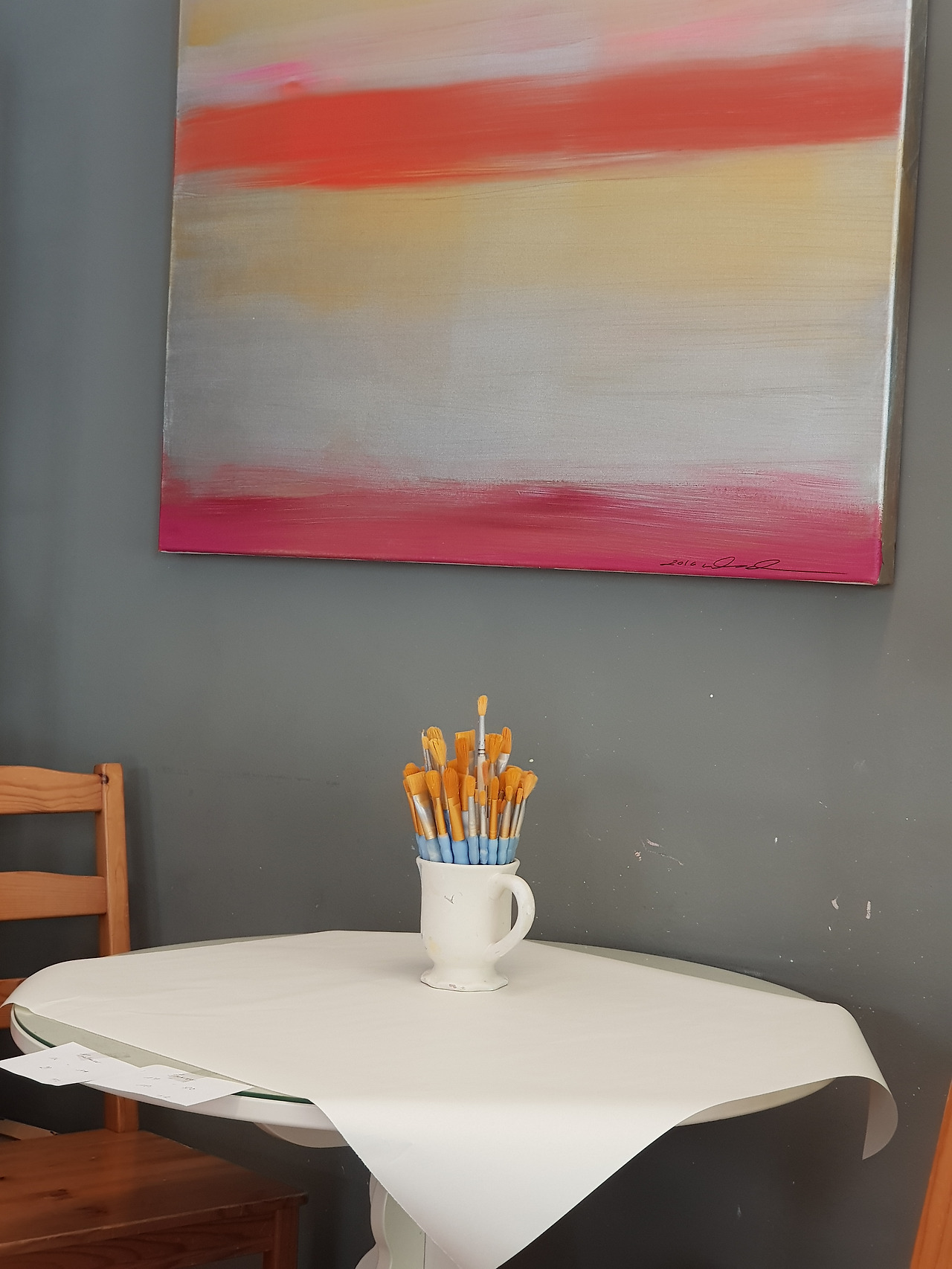 다음은 우리. 아이와 세 가지 옵션을 의논했다. 도자기 공방에서 접시 등 색칠하기, 수영장 가기, 영화관 가기. 수영장은 여기 아이들에겐 주말마다 부모들과 가는 곳이고, 영화관은 아이들이 어려서인지 호불호가 뚜렷하다. 영화 선택도 쉽지 않다. 그래서 선택한 곳은 도자기 공방. 금요일 오후 1시 30분 방과 후에 내가 아이 포함 다섯 명을 픽업해서 학교 옆 이탈리에서 피자를 피자를 먹었고 아이스크림까지 먹은 후 이탈리 앞 공방으로 출발. 반아이들 네 명의 초대 카드는 앞뒤로 아이가 직접 쓰게 했다.
