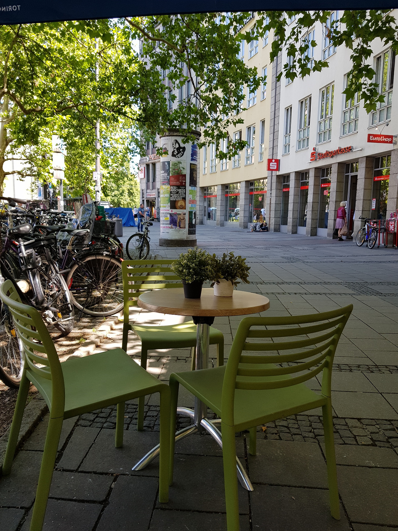 가을에는 아이도 독일 초등학교의 마지막 학년인 4학년이 된다. 1년만 지나면 중고등 과정으로 진학하는 것이다. 아이에게도 엄마에게도 도전은 언제나 옳다. 알바를 하는 동안 가장 좋았던 것은 오후 2시 반에서 3시 반 사이. 2시에 일을 마치고 가게에서 늦은 점심을 먹은 후 아이를 픽업하기 전에 젠들링거 토어 Sendlinger Tor 사거리의 노천카페에서 오후의 휴식 시간을가졌다. 라바짜의 푸른 파라솔 아래 에스프레소 한 잔이 다였지만 그럼에도 작은 에스프레소 잔에 황설탕 티스푼 하나에 차 소리, 트람 지나는 소리, 옆 테이블의 대화 소리, 바람 소리까지 섞어마시면 노동의 귀함과 휴식의 기쁨이 짜고도 달달하게 혀끝에 남았다. 고작 두 시간 일하고도 그랬다. 시원섭섭하구나. 굿바이 첫 알바여, 오후의 서늘했던 라바짜 그늘이여!