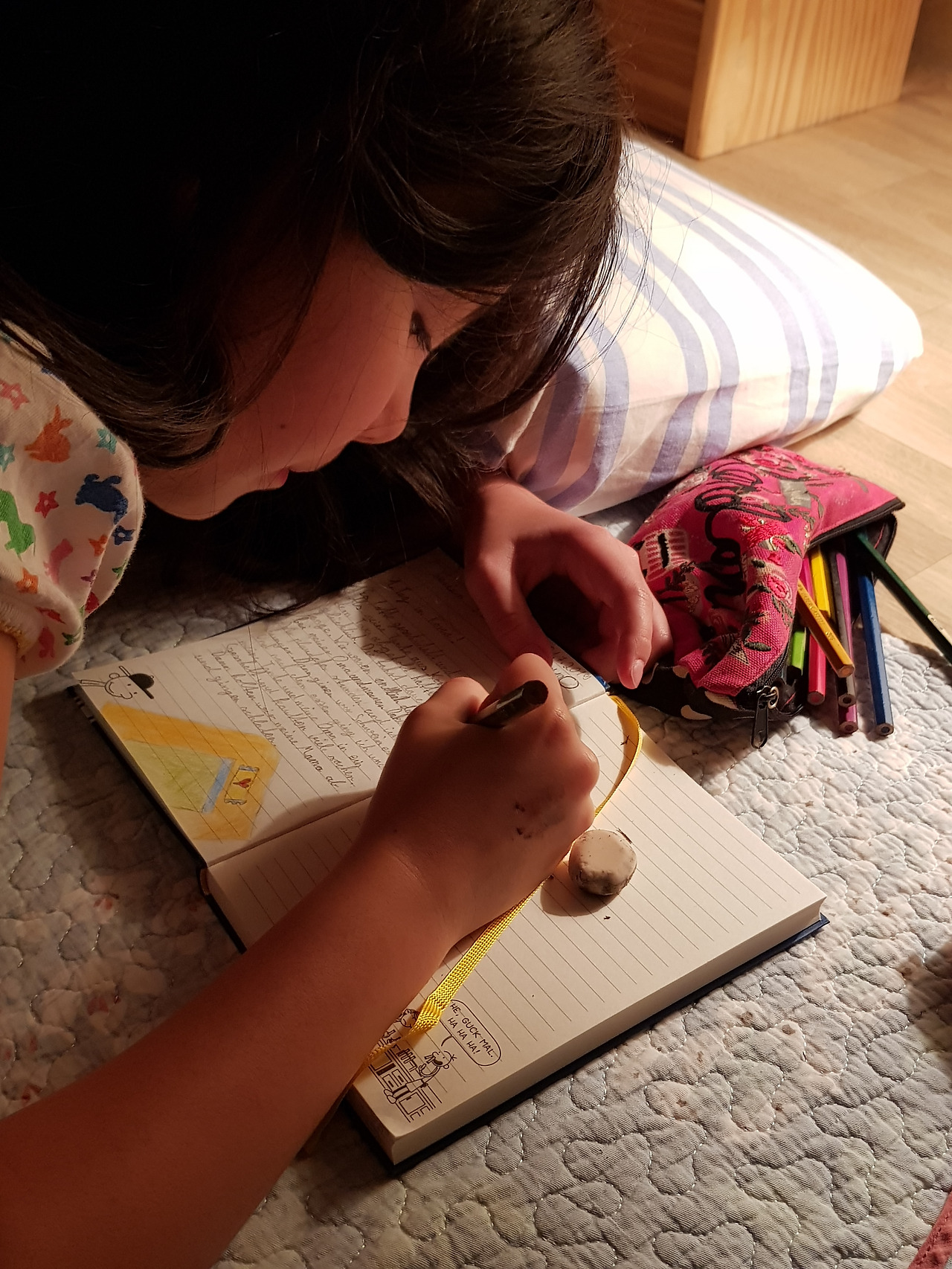 아이의 독일어 작문은 문법적으로 틀린 곳이 꽤 된다. 본인도 아는지 공개를 부끄러워했다. 초등 3년생의 작문이 좀 틀리면 어떤가. 할수록 쓸수록 느는 게 작문 실력임은 직접 해봐야 안다. 한 달 내내 꾸준히 쓸지 어떨지는 잘 모르겠다. 다만 첫날의 일기는 분명 독일의 파파와 고모와 할아버지 할머니들을 기쁘게 하기에 손색이 없을 것이다.