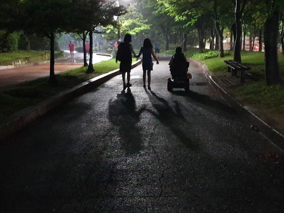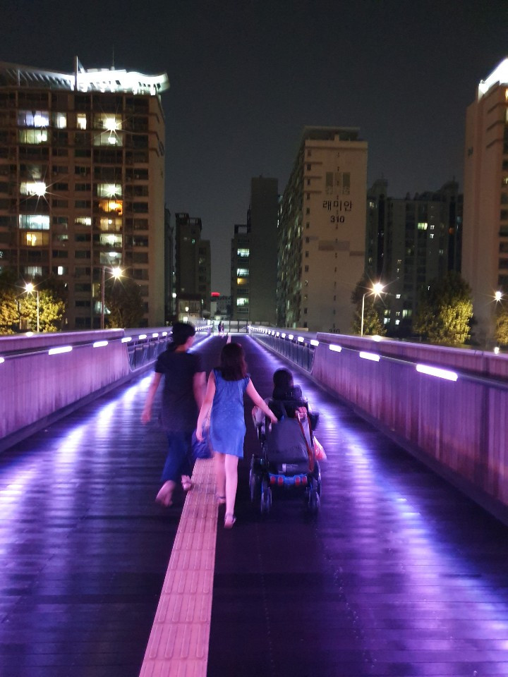 P.s. 토요일 저녁이었다. 샘을 만나러 여의도 IFC몰에 갔다. 집을 나서자 소나기가 쏟아졌다. 내가 좋아하는 장대비! 샘은 엄마를 커피숍에 남겨두고 아이만 데리고 영광도서 학용품 코너에서 아이가 좋아하는 열쇠고리를 잔뜩 사주셨다. 늘 저러신다. 엄마가 옆에 있으면 애가 맘껏 못 고른다고. 이모도 와서 아이는 더욱 신났다. 맛있는 저녁. 비가 와서 시원해진 여의도 공원의밤 산책. 샘과의 산책은 언제나 즐겁다. 아이와 엄마는 여의도 밤추억을 부지런히 사진으로 남기고.