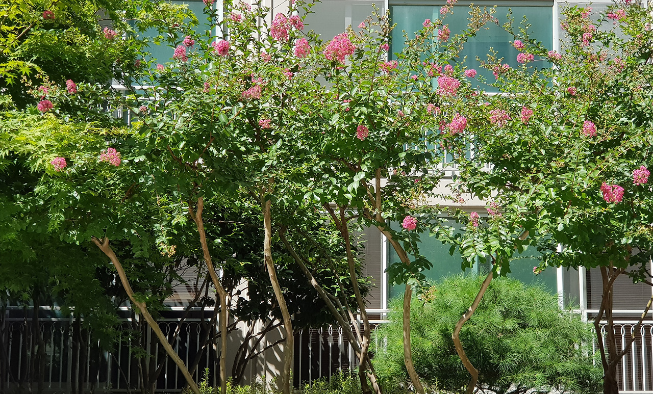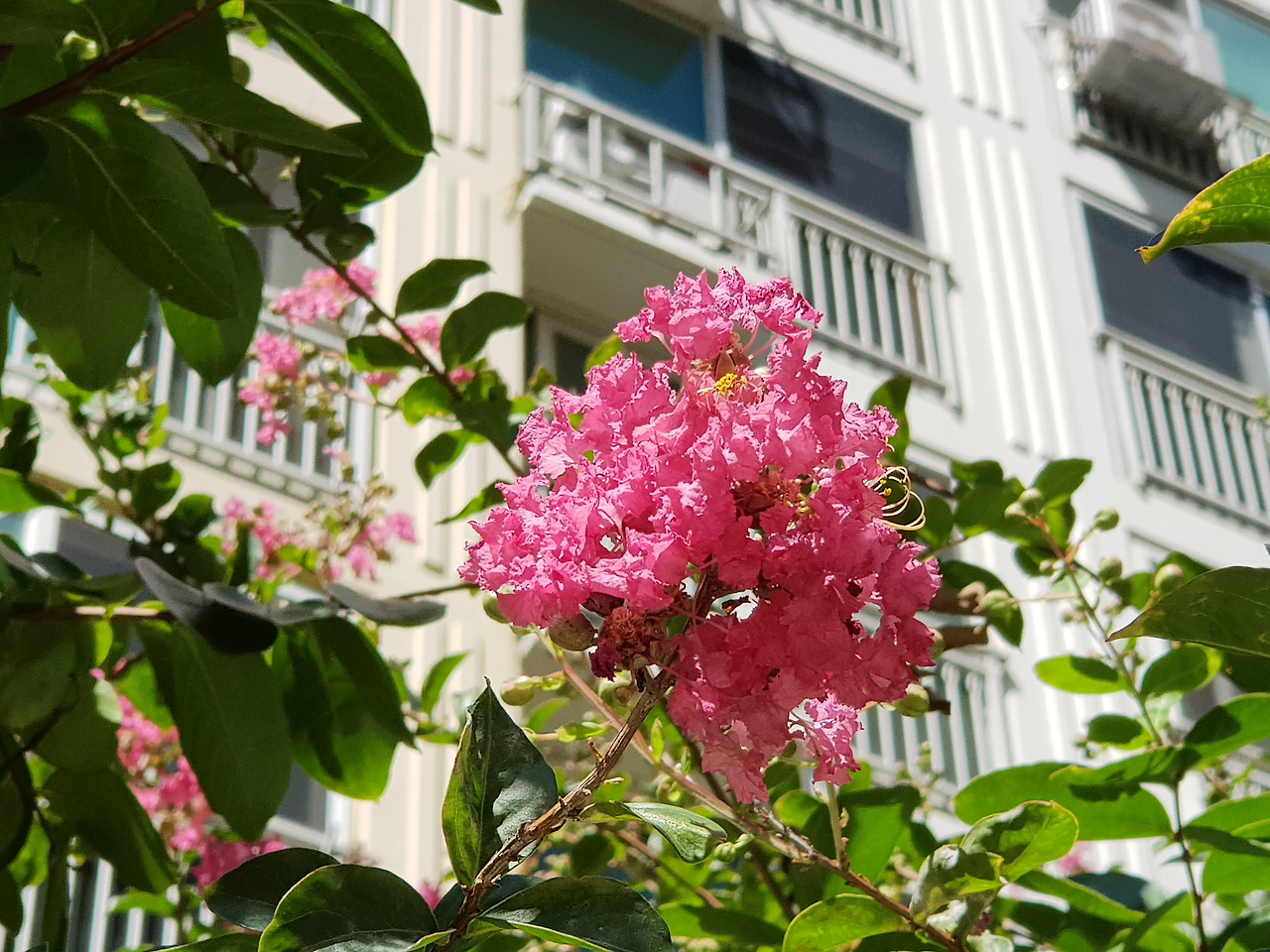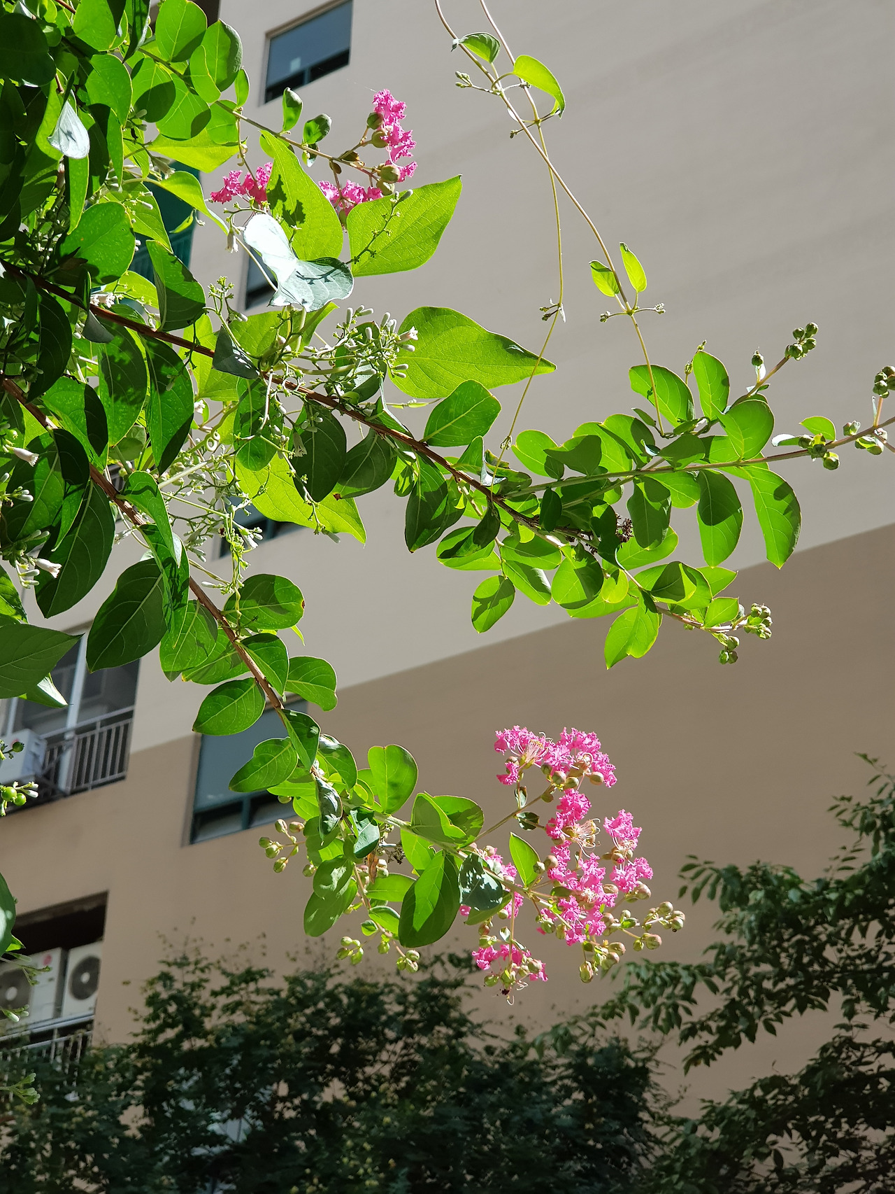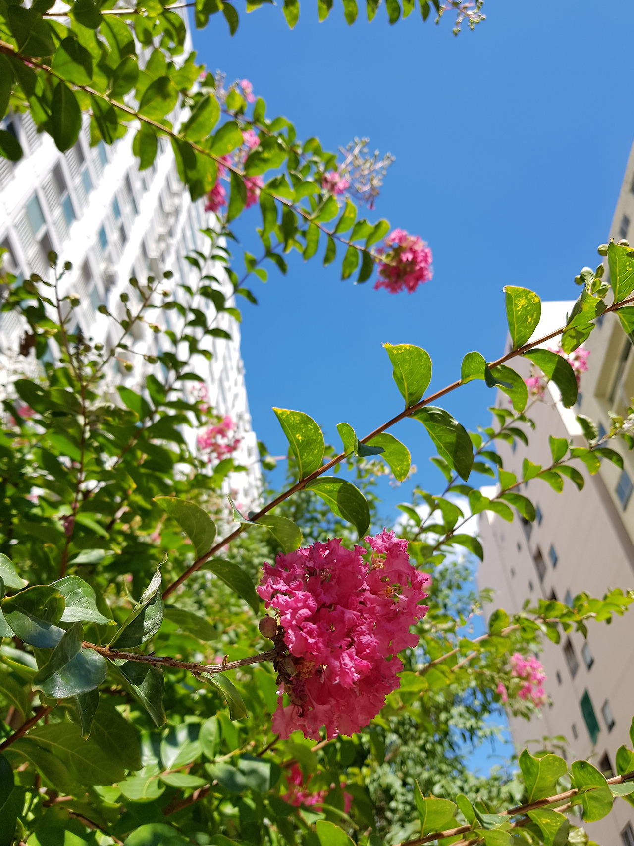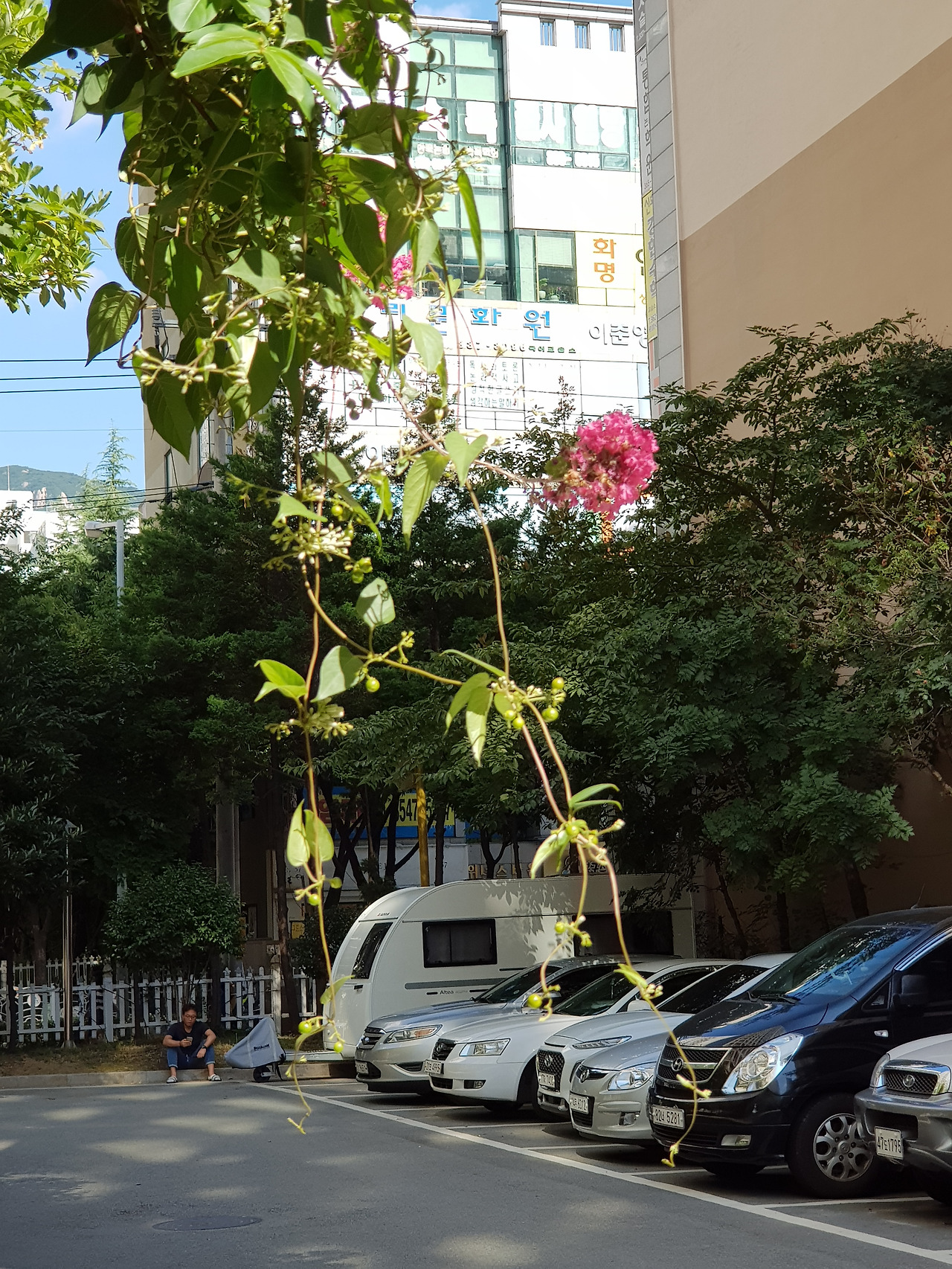 올여름 부산의 발견은 배롱나무. 서울에선 끝물이긴 해도 능소화를원 없이 보았는데 부산은 어딜 가나 배롱나무 천지였다. 백일 동안 핀다고 해서 백일홍이라고 불린다는 설명은 내 친구 Y에게 들었다. 너무 크지도 작지도 않은 나무 자체도 예뻤고, 꽃은 더 예뻤다. 처음에는 감탄만 하고 이름을 몰랐는데, 친척 언니 아파트 단지에 핀 배롱나무를 보고 이름을 묻자 언니가 네이버에 꽃 사진을 찍어서 검색해서 알려주었다. 부산에서발견한 네이버의 힘!