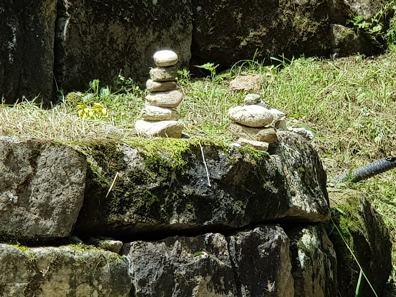 법흥사는 무릉법흥길을 따라 계곡 끝 깊은 산속에 있는 담장도 없는 절이었다. 절 안 장독대주변에 핀 꽃들이 예뻤다. 내가 좋아하는 다알리아도 보았다. 절 뒤편 적멸보궁으로 오르는 길은 제법넓었고, 길가엔 차곡차곡 쌓은 돌탑과 수려한 소나무들이 눈길과 발길을동시에 끌고 당겼다. 적당한 햇볕과 서늘한 그늘, 바람까지 안성맞춤으로 불어 그 풍경들을 사진에도 담고 마음에도 담느라자꾸 발걸음을 멈췄다. 스님 뒤를 따르며 이마에는 송송 땀방울도 맺혔다. 시원한 샘물로 목을 축이고 다시 적멸보궁 길을 오를 때 나이 드신 스님의 뒷모습도 보았다. 십여 년 전 처음 뵈었을 때 지금의 내 나이셨는데 벌써 예순을 훌쩍 넘기시다니.