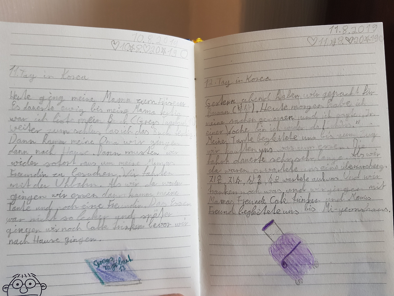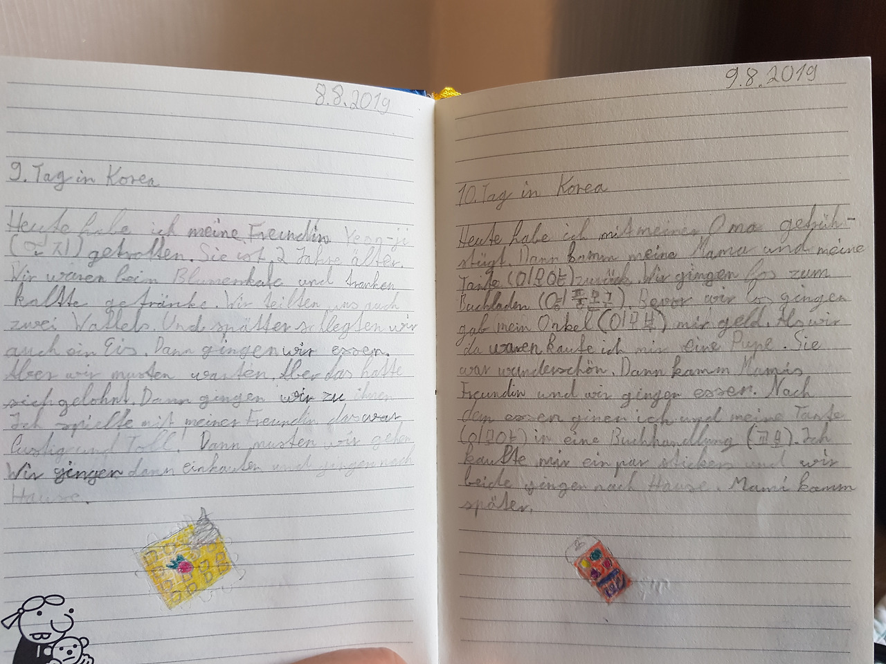 독일의 초등학교는 방학 숙제가 없다. 그 흔한 일기도 독서노트도 없다. 선행 학습도 하지 말라고 한다. 아이가 학교 수업에 흥미를 잃을 수 있고, 교사와 다른 아이들에게 피해를 줄 수 있다고. 정말 땡큐 아닌가! 그래서 엄마가 고심해서 내 준 숙제가 독일어로 일기 쓰기. 다른 건 괜찮다. 일기만 써라!