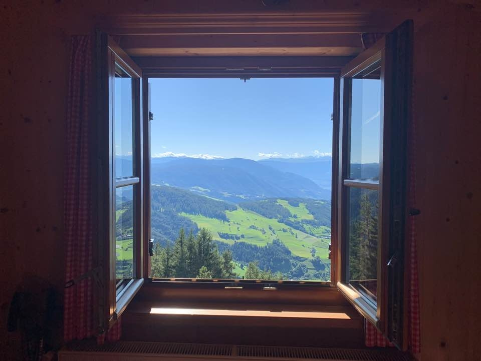 산장을 독일어로는 휘테Hütte 라고 부른다. 우리가 머문 산장 호프 알플 Hofer Alpl의 윗쪽 돌로미티 산맥 중 하나인 슐레른(위) 산장의 방에서 비라본 풍경(아래)