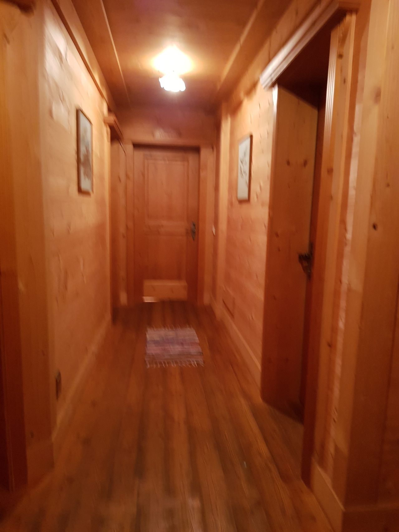3층 매트리스 방과 복도 천정의 채광창, 3층 복도(위) 2층 침대방 복도(아래 좌우)와 1층 신발장(아래 가운데)