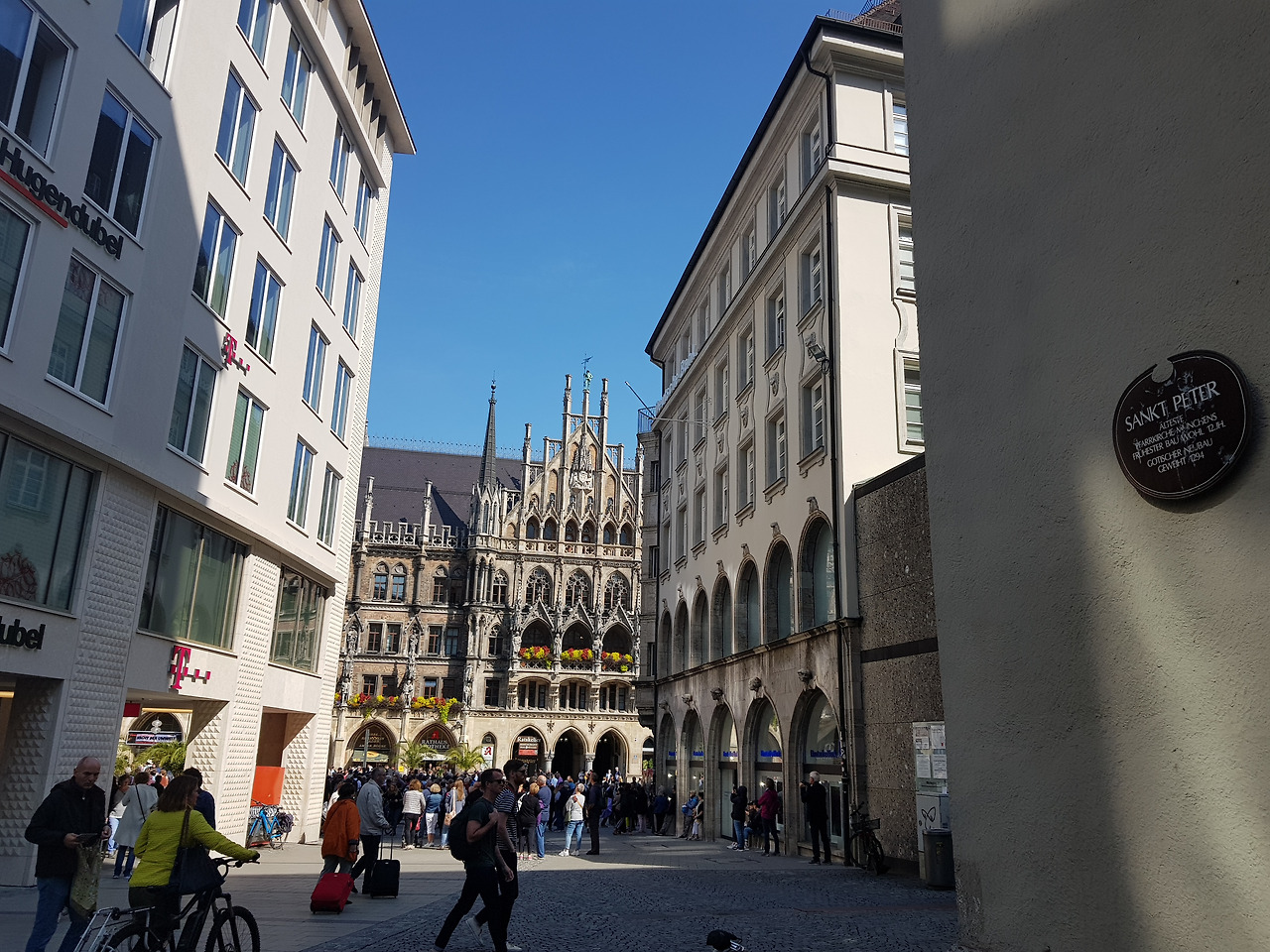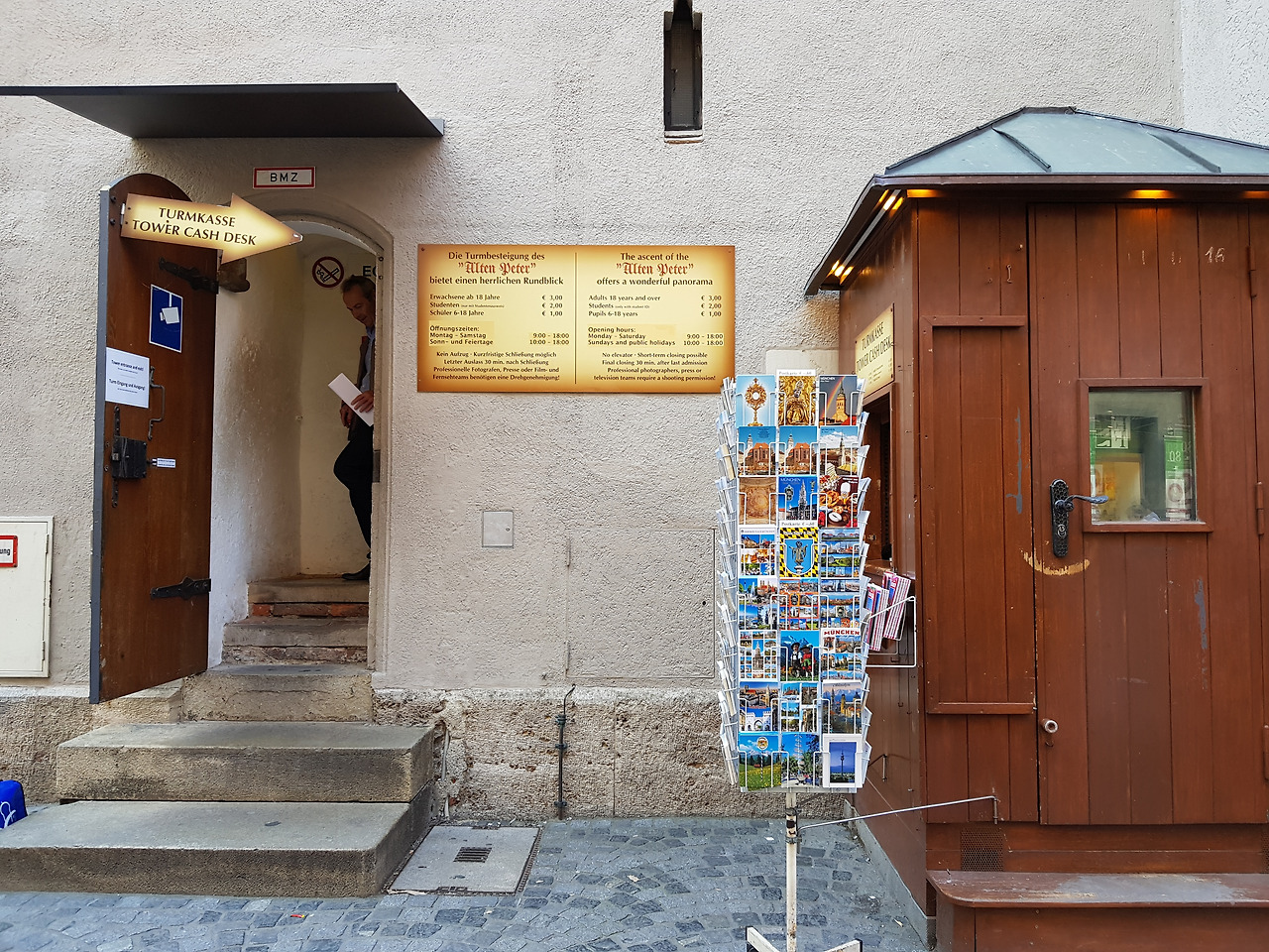 *성 피터 성당은 뮌헨 시청사 맞은편 T텔레콤/후겐두벨 건물과 도이치 은행 사이 골목에 있다. 성당을 끼고 왼쪽으로 꺽어지면 전당대로 올라가는 입구가 있다. 싸다. 1~3유로. 계단은 좁고 가파르고 끝이 없다. 엘리베이터 없음.