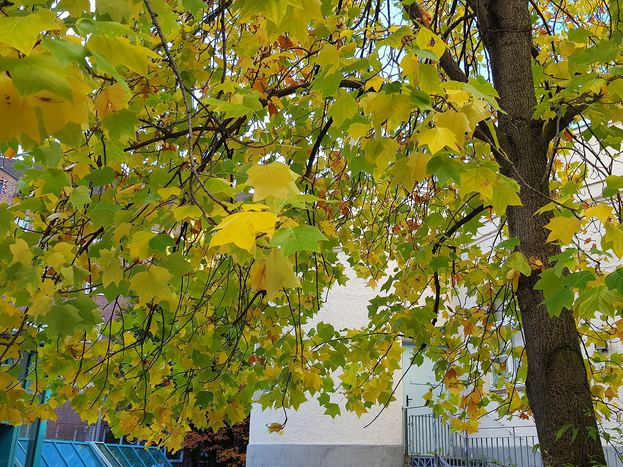 독일의 단풍은 노랑! 노랗게 물든 아이 학교 앞 가로수들