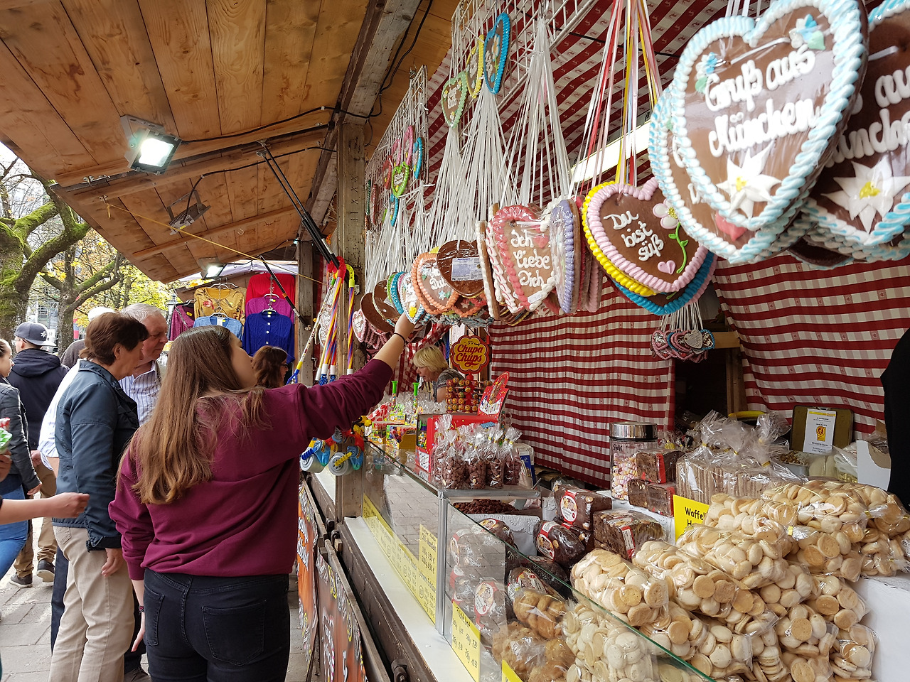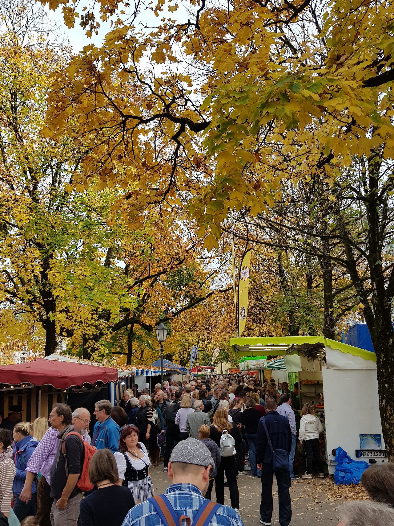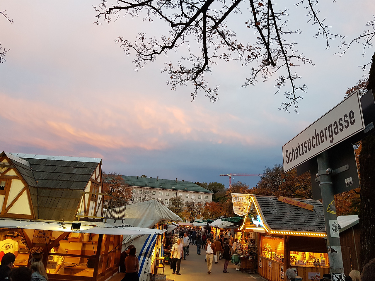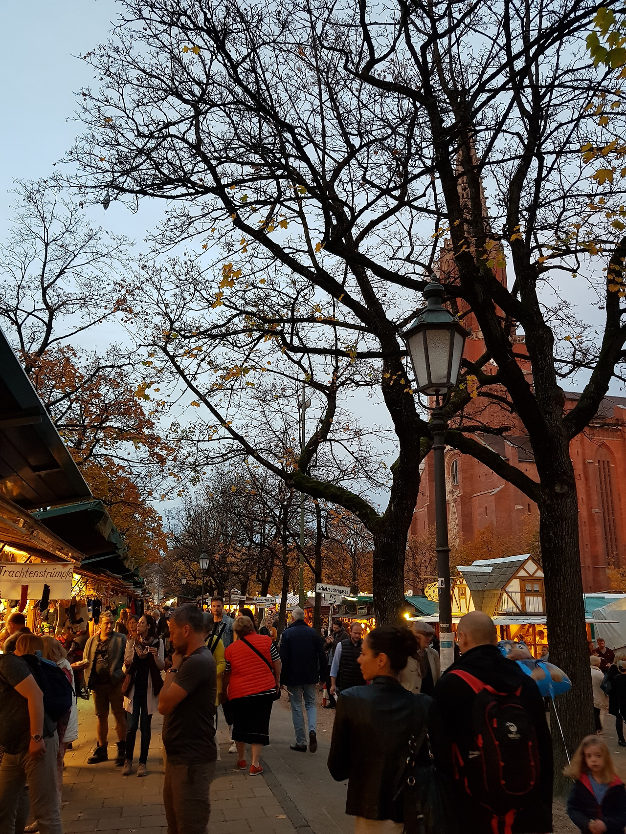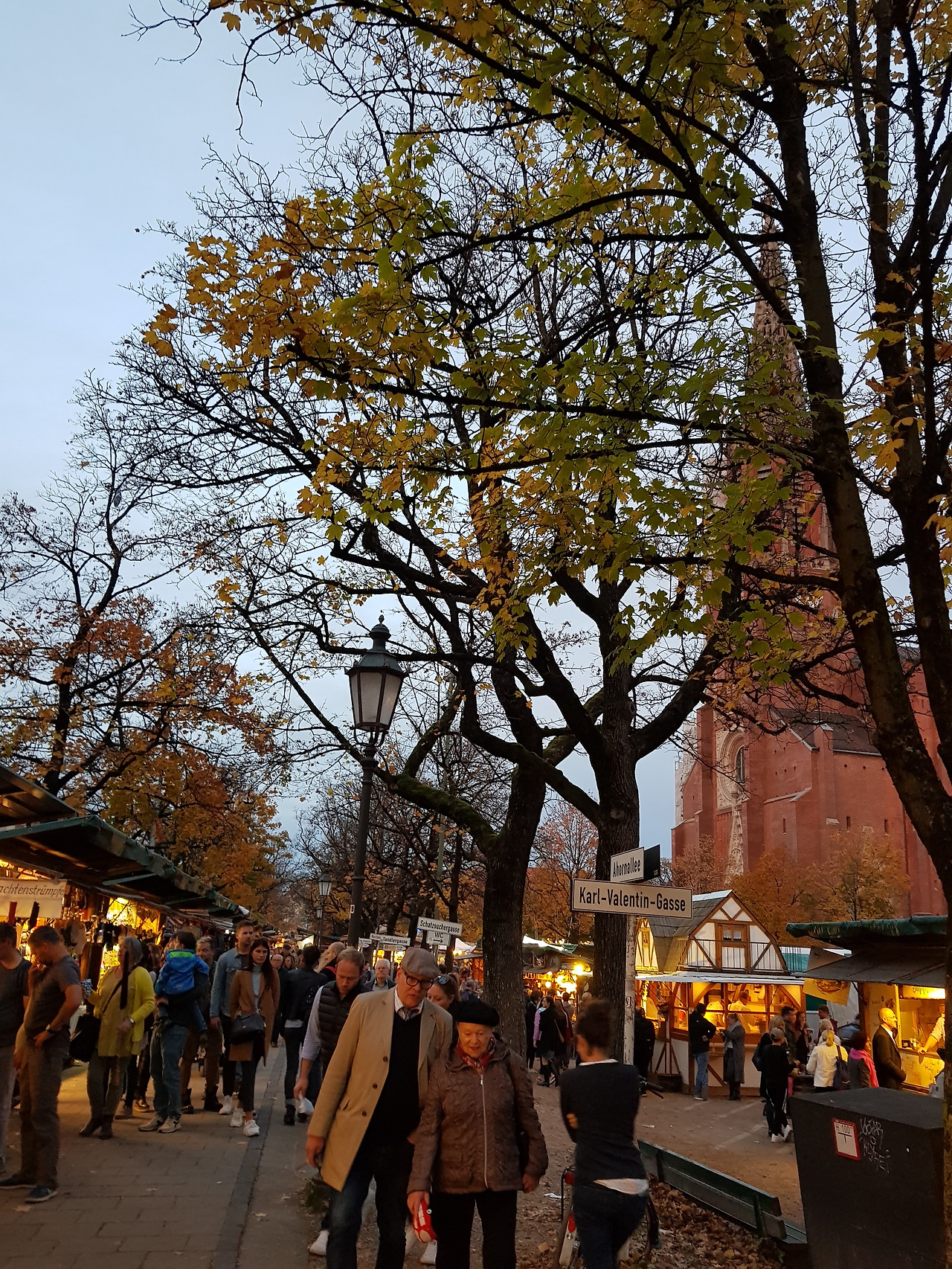 그중에는 뮌헨의 연례 전통 시장도 있다. 이름은 아우어 둘트 Auer Dult.1년에 세 번 열리는 야외 시장이다. 봄(5월), 여름(7월), 가을(10월)에 오픈하는데 올가을엔 10.17(토)부터 10.27(일)까지 열린다. 장소는 내가 일하는 호텔 바로 옆 광장 마리아 힐프 플라츠 Mariahilfplatz. 우리 재래시장처럼 없는 게 없다. 볼수록 정겹다. 뮌헨의 할머니들께 사랑받는 시장 같다. 재래시장과 벼룩시장을 적당히 합한 느낌. 주말은 날씨가 좋아서인지 사람들로 넘쳤다. 광장 한가운데의 마리아힐프 성당을 중심으로 왼쪽은 먹거리와 놀이기구가 있고, 오른쪽은 시장이다. 옷부터 책, 주방용품, 엔틱까지 골고루 구경할 수 있다.