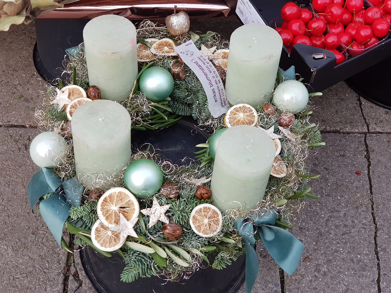 빅투알리엔 마켓의 꽃가게 몇 군데를 꼼꼼하게 둘러보고 아이가 고른 우리집 크리스마스 캔들! 빨간 게 젤 예쁘다고 해놓고 선택은 오렌지로!