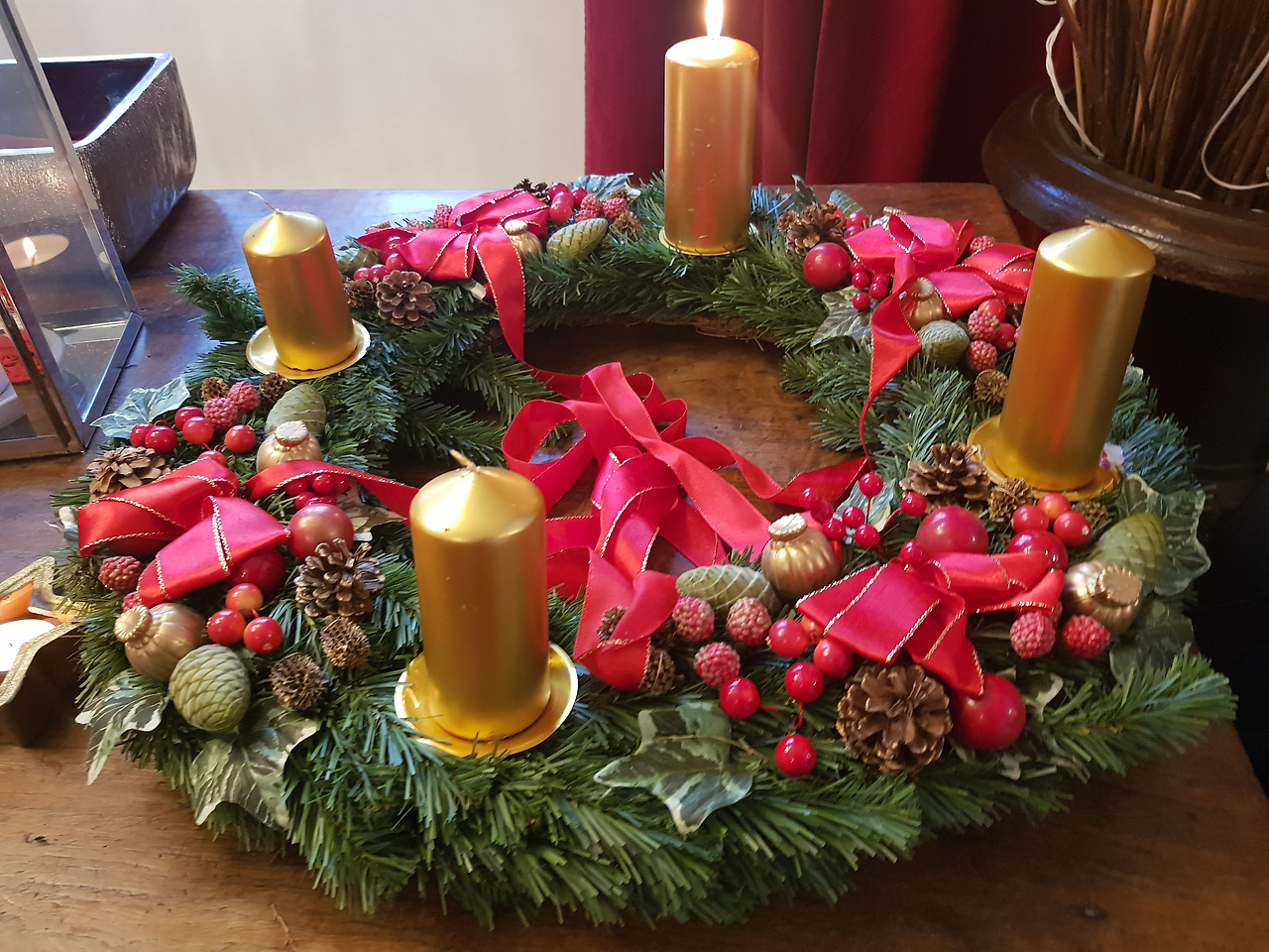 예수님 탄생 기념 대림절(혹은 강림절)을 독일어로는 아드벤트 Advent라 한다. 12.1(일)은 첫번째 아드벤트. 크리스마스 때까지 매주 하나씩 초를 켠다. 사진은 호텔의 초.