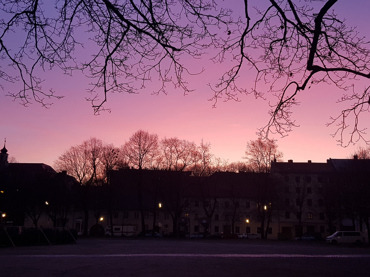 새벽 출근길의 마리아힐프 플라츠 Mariahilfplatz 광장의 풍경