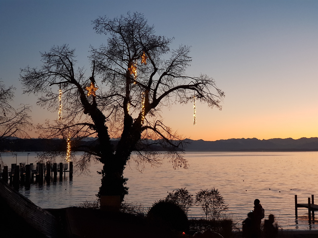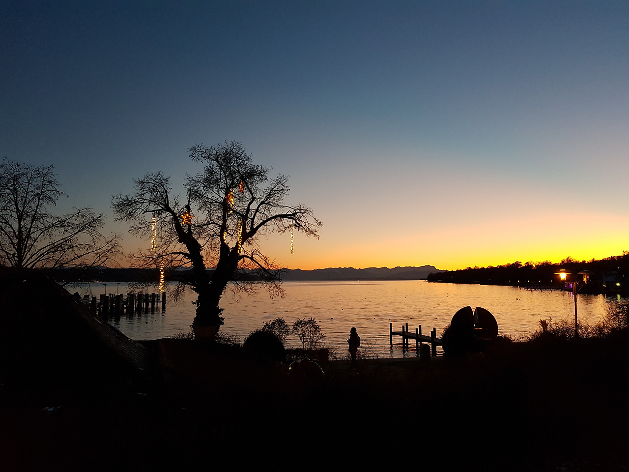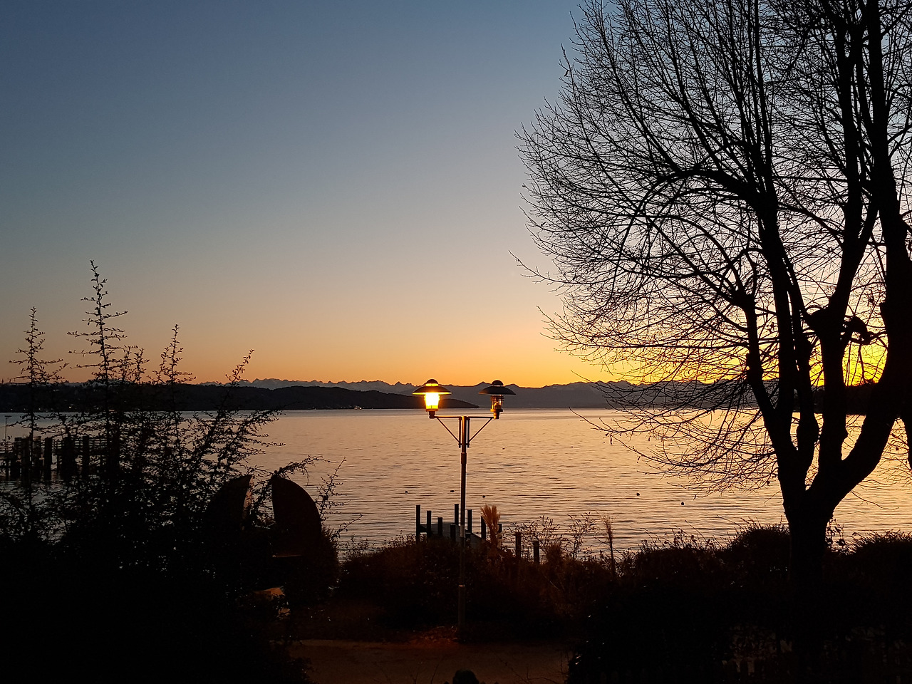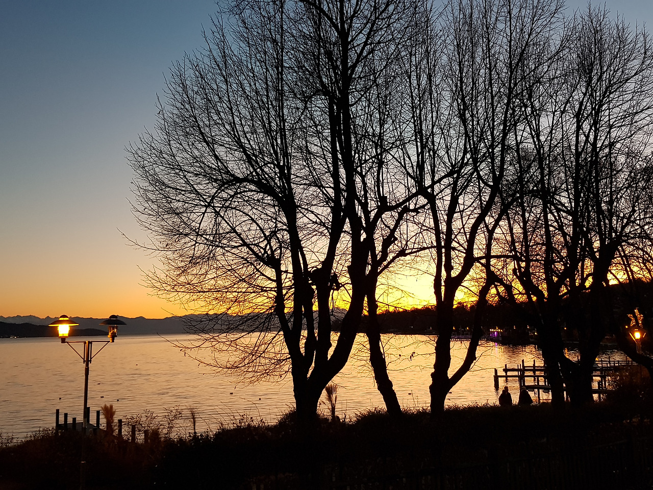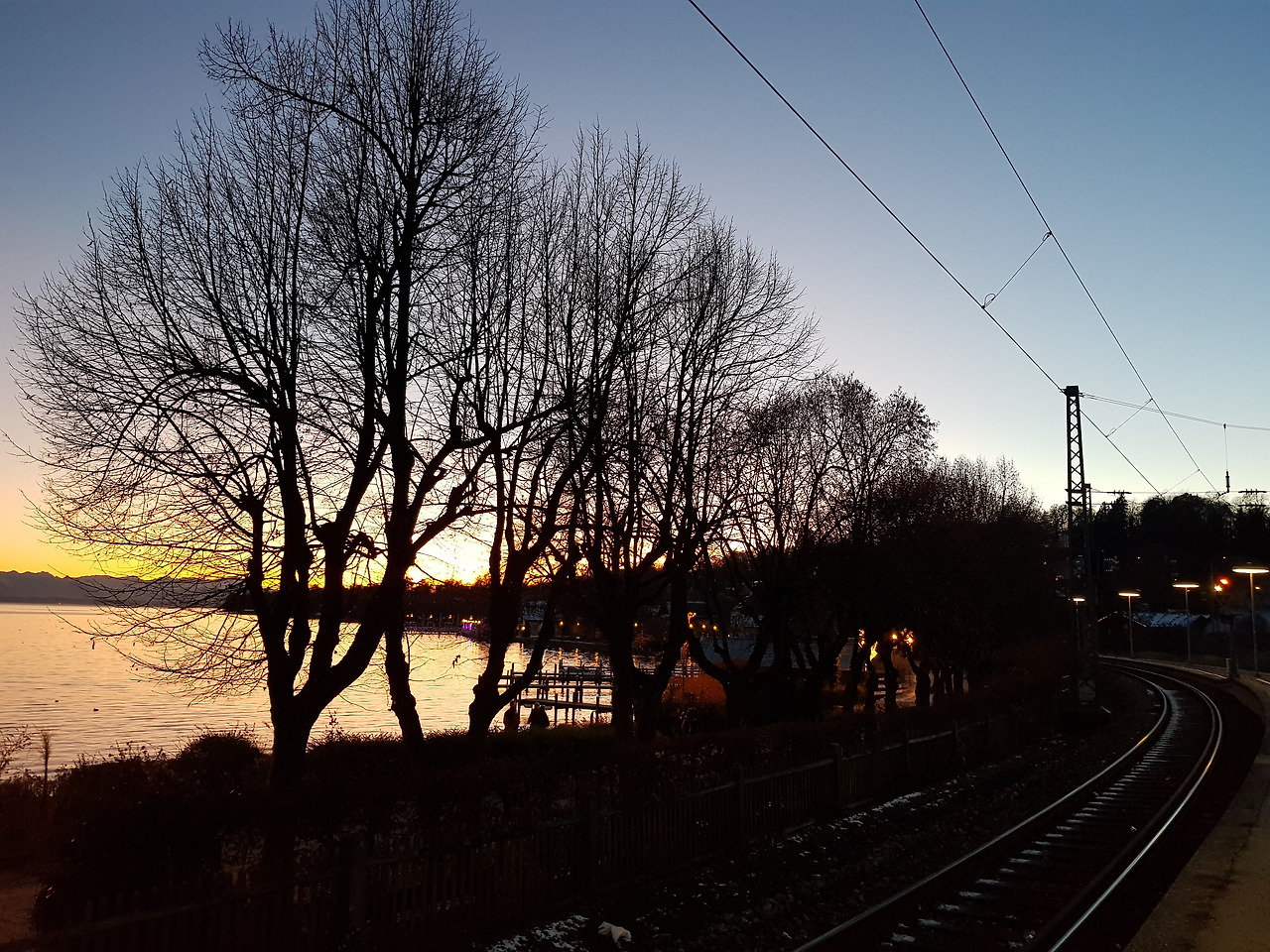금요일에는 조금 늦은 시간에 시어머니 댁으로 갔다. 시누이 바바라가 일을 마치고 집에 가서 차를 가지고 우리를 데리러 오겠다고 했기 때문이다. 아이도 시험 공부할 시간이 부족했다. 크리스마스 방학 전에 독일어 독해와 작문 시험 두 개가 남아있었다. 집에 와서 독일어 읽기를 조금 하고 출발했다. 오후 4시 20분쯤 뮌헨을 출발할 때는 해가 밝았는데 S반으로 5시쯤 슈탄베르크 호숫가 역에 다다르니 해가 지고 있었다. 석양빛이 비치는 호수는 아름다웠다. 이런 풍경은 시어머니를 방문하는 날 받는 특별 선물이다.