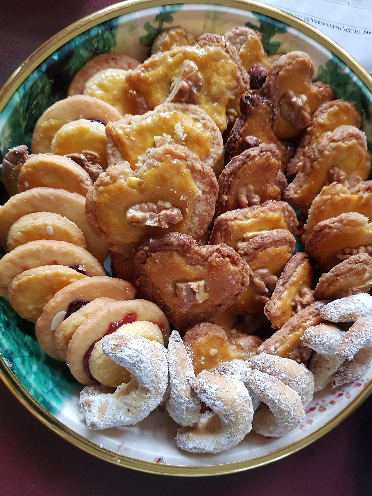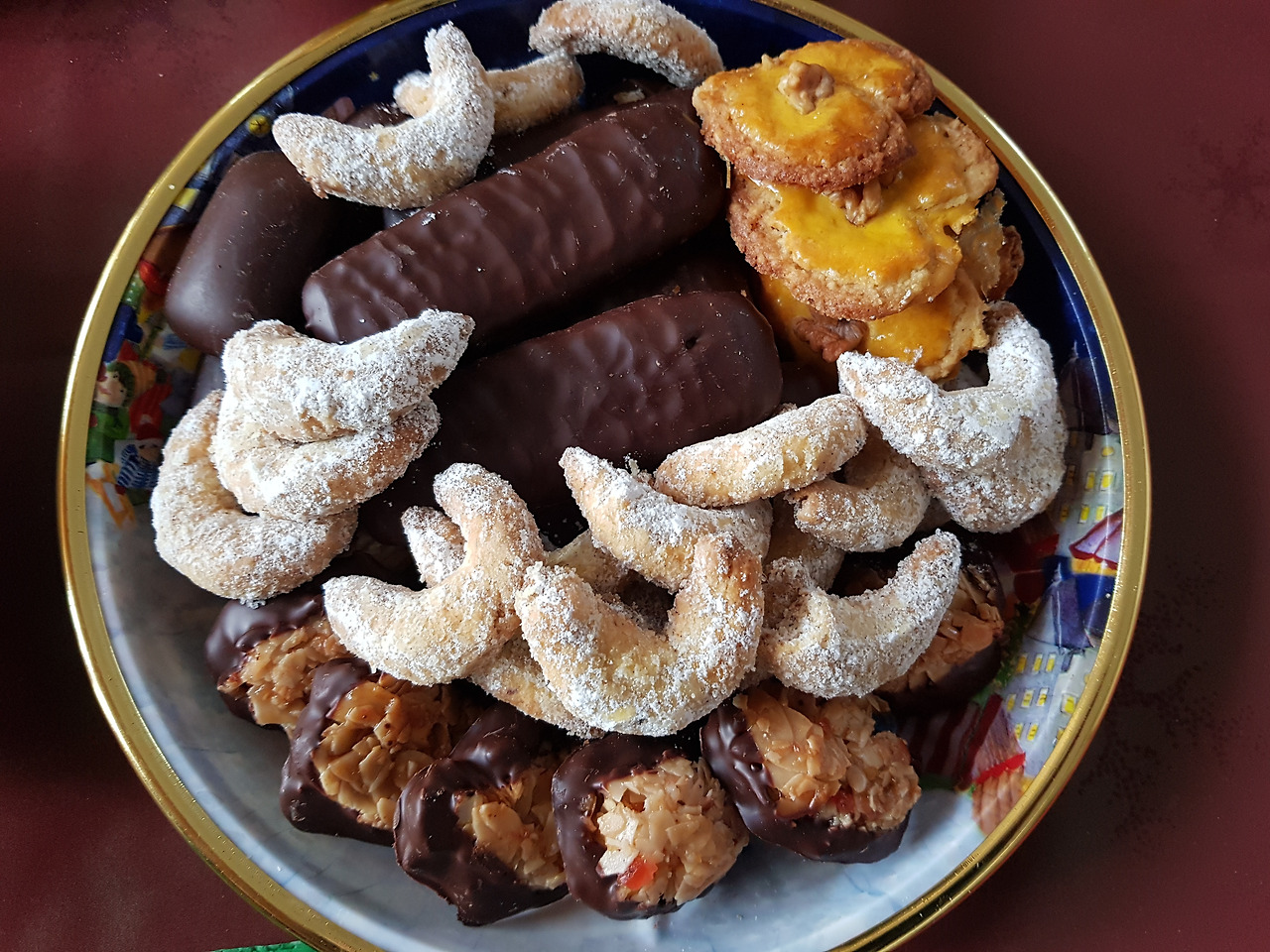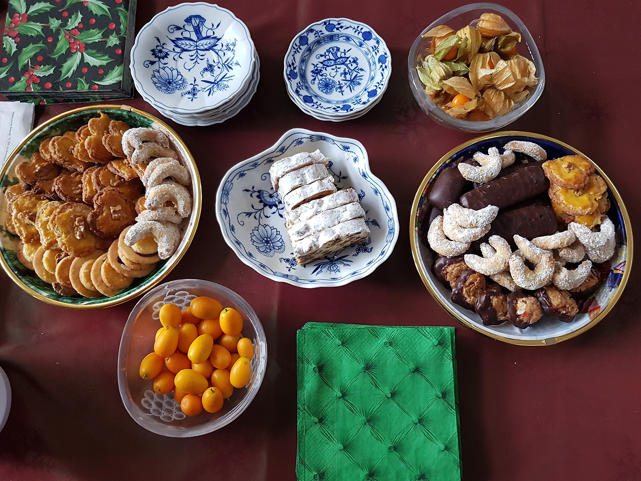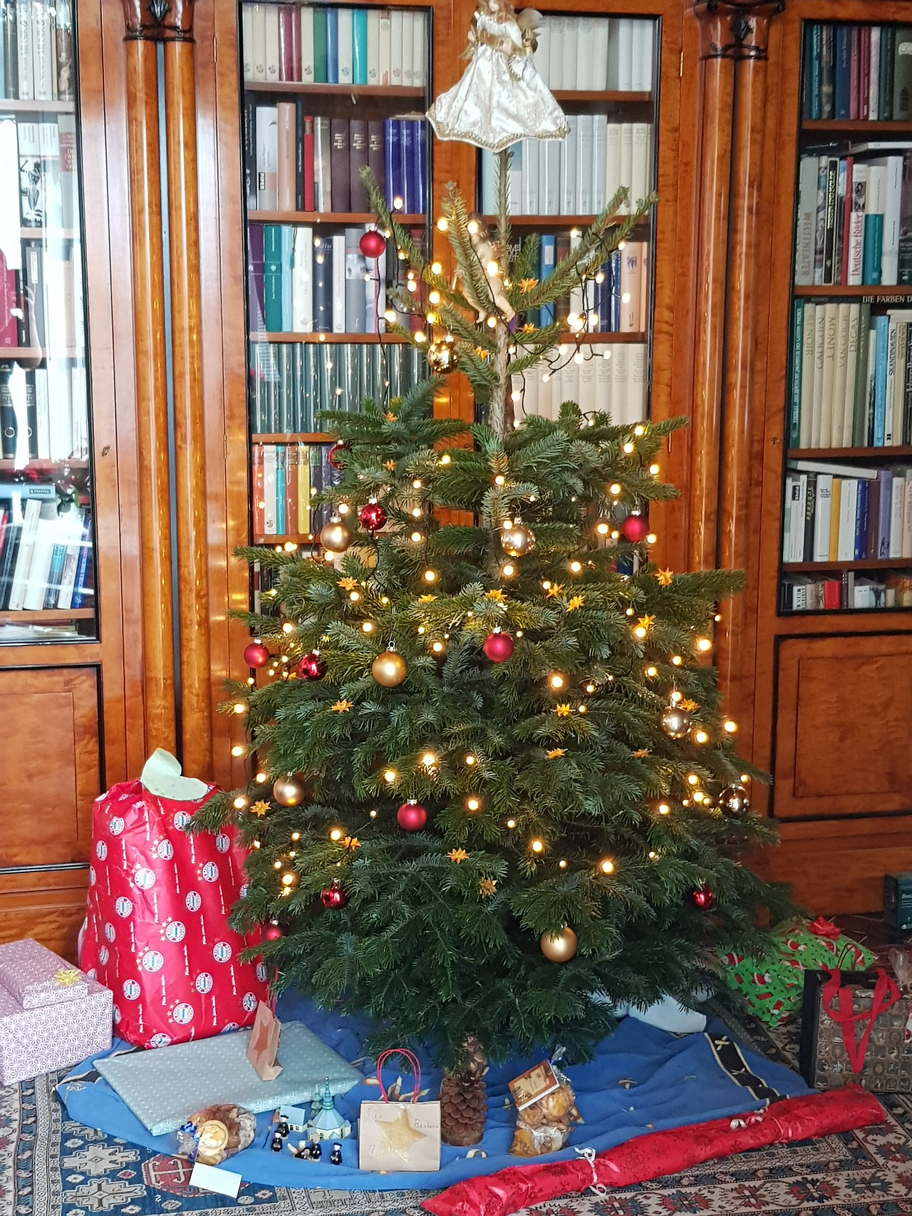 점심 식사를 마치고는 어머니 댁으로 몰려가 차와 커피와 크리스마스 쿠키로 티타임을 가졌답니다. 어머니댁의 크리스마스트리 아래에 선물을 놓고 각자 개봉식도 했고요. 어머니께서 모두에게 미리 봉투를 주셔서 각자 원하는 선물을 사 오라 하셨거든요. 우리 어머니 스타일이 저는 정말 좋아요. 예전에는 제게 향수를 선물로 주셨는데, 향수 알레르기가 있던 저는 쓸 수가 없었거든요. 저는 체홉의 4대 단편집 독일어 책을 사고 돈을 아꼈고요, 알리시아는 김나지움용 책가방을, 클레멘스는 구두를 샀어요.