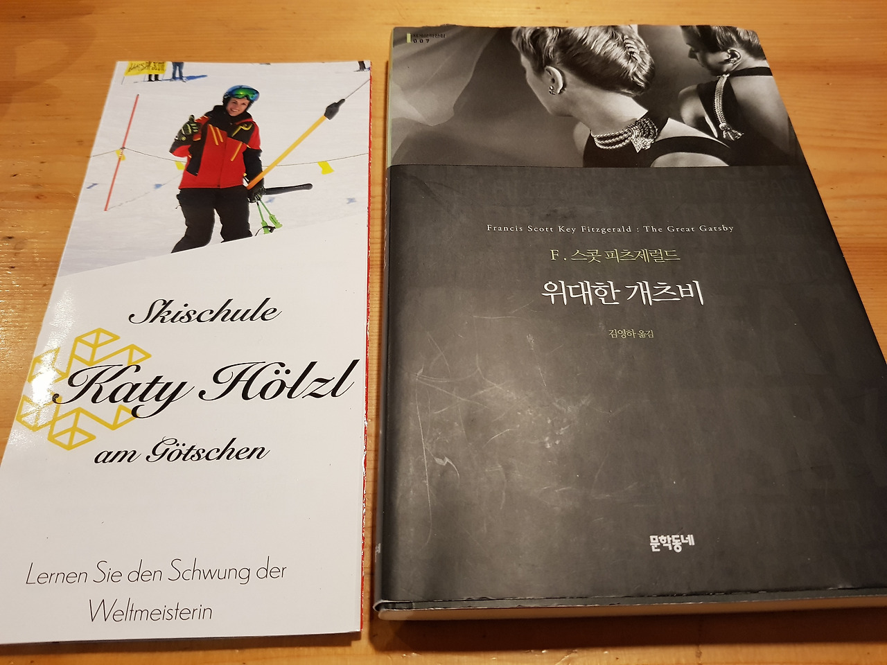 둘째 날은 스키 데이. 오전 9시가 되기도 전에 동네에서 가까운 스키장으로차를 달렸다. 레아마리 맘이 아이들과 스키를 타는 동안 레스토랑 겸 카페인 휘테 Hütte에서 개츠비를 읽었다. 독일에 와서 두 번째로 만나는 개츠비. 처음은 한여름, 두 번째는 한겨울의 이미지로다가온 개츠비. 여름날의 바닷가. 하얀 파도가 밀려오는 해변의산책.흰 셔츠에 흰 리넨 바지. 건강한 갈색 피부. 포기할 수도, 잡히지도 않는 열망으로가득한 두 눈. 눈부신 햇살과 겨울 해를 받아 반짝이는 눈, 눈, 눈. 순백의 세상에서도 초록잎을 간직한 나무들.밤새 눈을 맞고도 고개도 허리도 굽히지 않는 나무들. 꿋꿋하고 꼿꼿한 가지 끝에는 금빛 은빛 구리빛의 눈동자들.