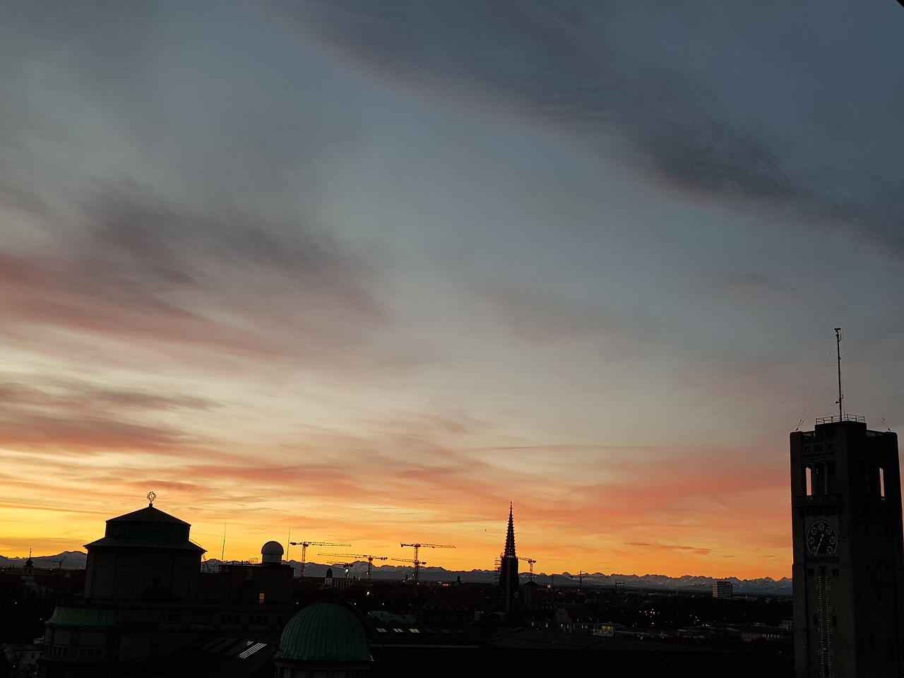 독일에서는 회사의 직원 식당을 칸티네 Kantine, 학교나 대학의 구내식당은 멘자 Mensa라고 부른다. 독일 특허청 칸티네에는 한쪽에 카페테리아 공간도겸하고 있다. 칸티네는 10층 건물의 꼭대기층인데 사방이 유리로 되어 있어 해가 잘 들어오고 뮌헨 시내가 한눈에 보인다. 주변에 높은 건물이 없기 때문이다. 심지어 아침마다 일출도 볼 수 있다. 1월의 일출은 출근 두 시간 후인 아침 8시. 첫 주는 다가올 주말과 일출 풍경 하나로 버텼다.근무 시간이 길고 풀타임인데도 봉급은 호텔보다 적고, 동료들은 버거웠다.