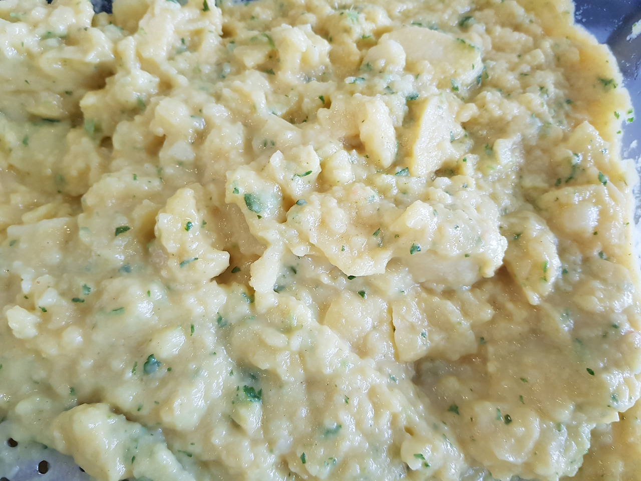 여러 가지 샐러드들(위) 메인 디쉬에 곁들이는 삶은 감자와 감자 샐러드(아래)