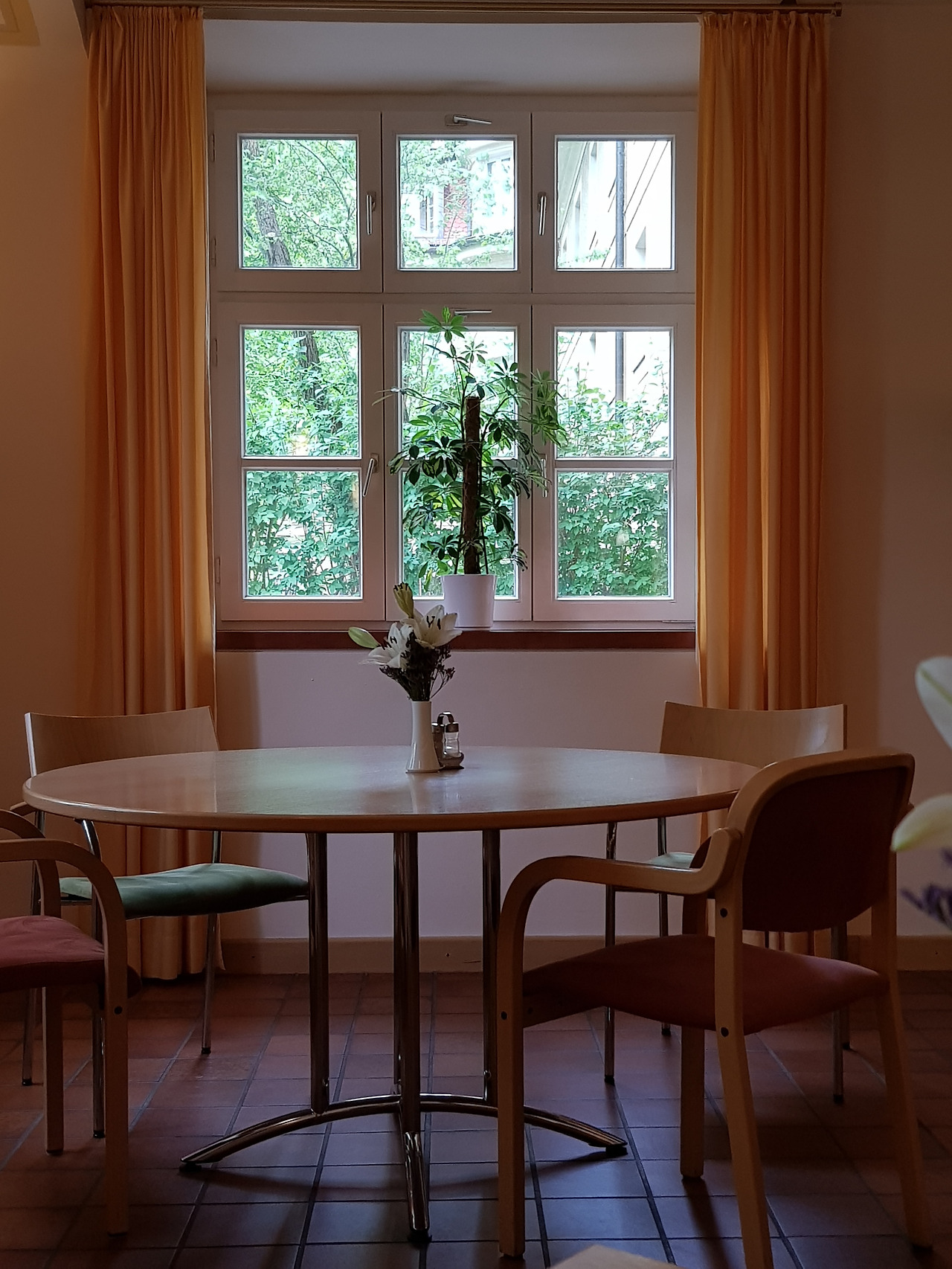 지난주에는 제가 일하는 요양원에서 무료 마스크를 다섯 장이나 주더군요. 파란색 종이 마스크, 일명 치과용 마스크예요. 한국의 기능성 마스크에 비할 바는 아니지만 고맙게 받았습니다. 요즘 독일에서 마스크만큼 귀한 물자는 없거든요. 한국에서 보내준 천 마스크 등은 언제 도착할지 기약이 없고요. 4월 한 달은 제게도 요양원 일에 익숙해지느라 바쁜 시기였답니다. 주방이 거기서 거기겠지 생각했는데 아니더라고요. 주방엔 5명의 셰프들, 제 소속인 서비스팀과 설거지팀도 각각 5명씩입니다. 근무는 모든 부서가 1일 3인조입니다. 저희 팀은 샐러드와 디저트 등을 담당하지요. 메뉴가 매일 바뀌고, 메인도 2~3개씩 있어서 좀 헷갈리기도 한답니다.