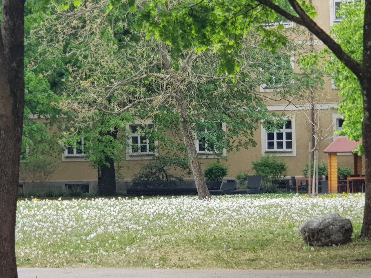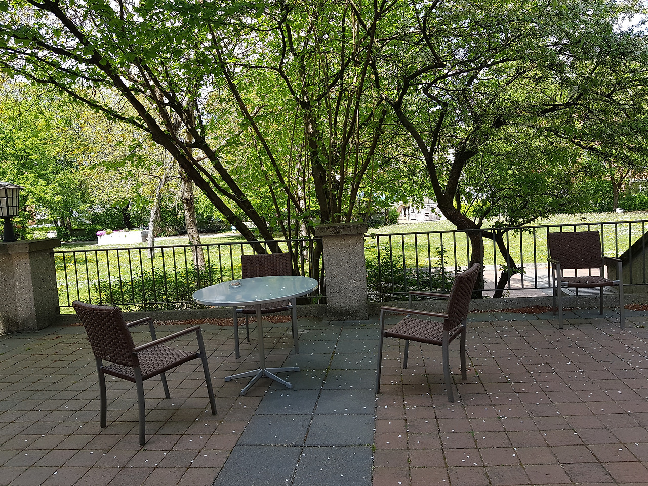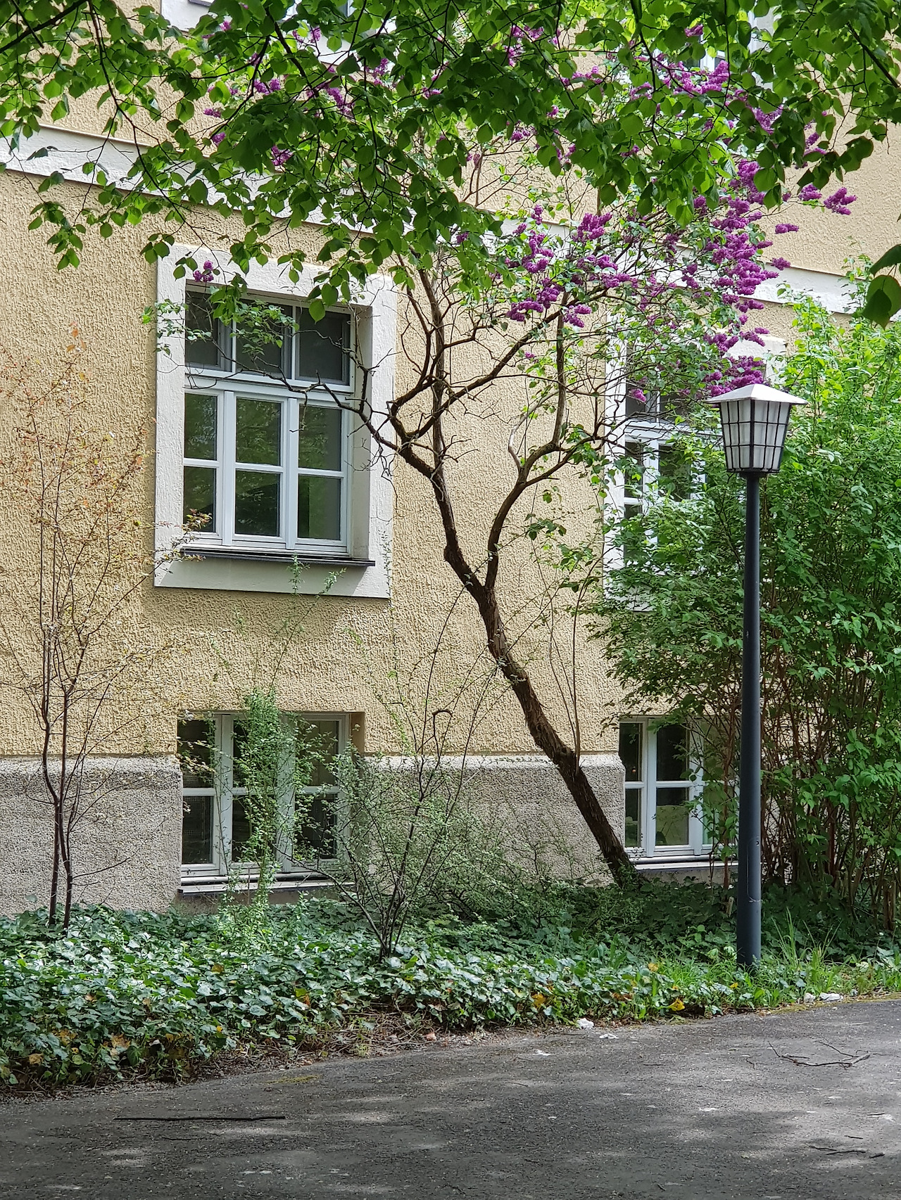 4월, 나날이 푸르러지는 요양원 건물 안쪽 정원