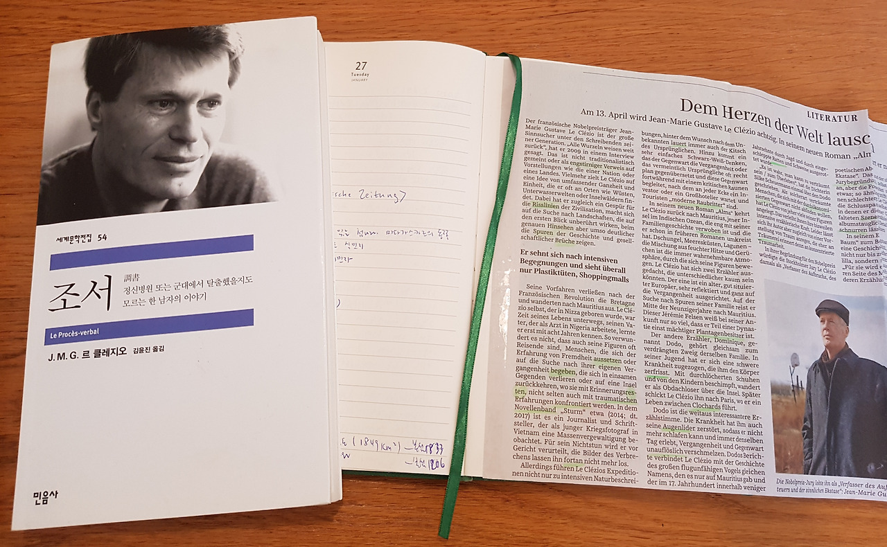 세계문학 읽기도 계속하고있다. 프랑스 근대소설부터 읽고 있다. 4월에 스탕달의 <적과 흑>, 5월은 발자크의 <고리오 영감>이다. 그 사이 일간지 쥐트도이체 차이퉁에 실린 르 클레지오 기사를 읽고 그의 첫 소설 <조서>를 펼쳤다가 금방 접었다. 저녁에 손에 들기만 하면 어찌나 잠이 쏟아지던지. 어쩌면 그렇게 안 읽히는 내용을 그렇게 길게 쓸 수 있는지! 작가의 역량에 놀라움을 금할 수 없었다는 말로 감상을 대신한다. 독서 내공을 키우면 언젠가 다시 도전할 수있을까. 집 책꽂이에르 클레지오의 책이 두 권이나 더 있더라는 놀라운 발견. 제목은 <사막>과 <홍수>.