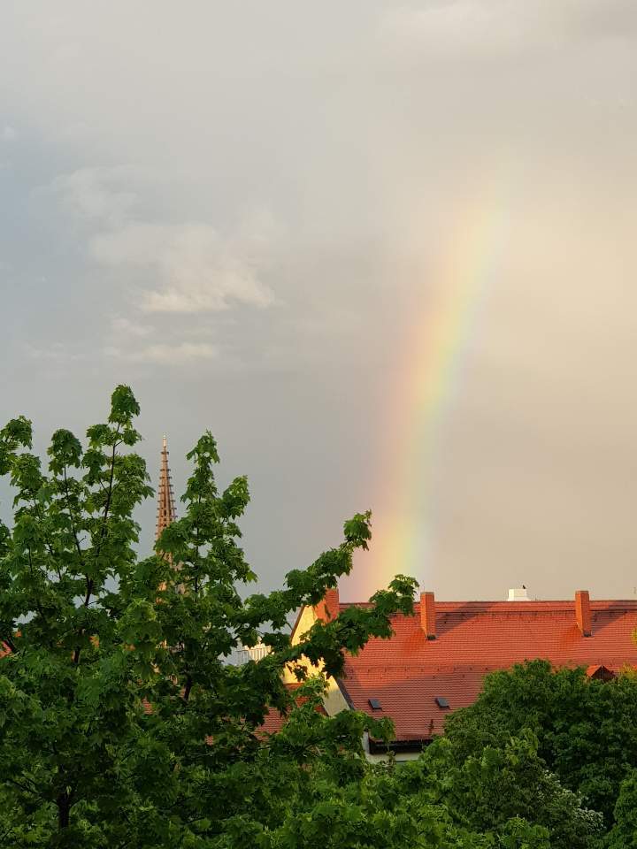 오월의 첫 월요일에는 무지개도 보았답니다. 늦은 오후에 소나기가 쏟아졌어요. 곧이어 해가 나왔고요. 무심코 부엌 발코니에서 밖을 바라보는데 세상에, 하늘에 선명한 무지개가 떴지 뭐예요! 독일에서 두 번째로 보는 무지개였답니다.첫 무지개는 작년 초 레겐스부르크의 새어머니 댁을 방문했을 때 보았지요. 오십이 되어도 무지개를 보니 가슴이 뛰었어요. 한국의 하늘도 계속 맑고 푸르기를 기도할게요. 오래전 오월에는 시를 쓴 적도 있는데, 언제 시심이 되살아나려나 모르겠네요. 다시 기운 내서 글쓰기에 매진하려 합니다.샘께 푸르른 편지도 더 자주 드릴게요.