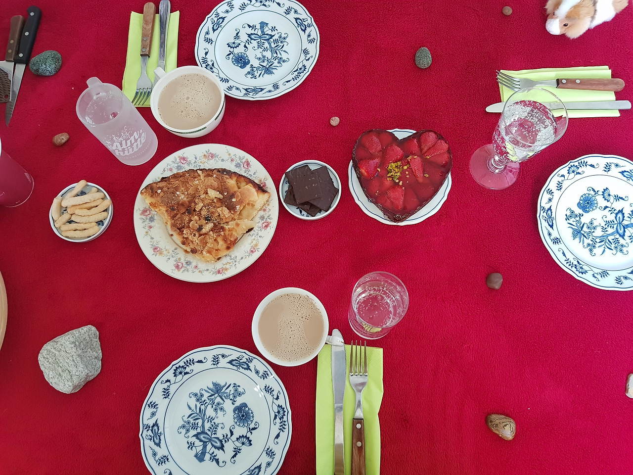 오늘은 독일의 어머니날이었어요. 5월 둘째 주 일요일이 어머니날입니다. 어머니날이 일요일인 건 여러모로 편리합니다. 올해는 코로나 때문에 직접찾아뵙지는 못했지만 보통은 날짜를 조정해서 양쪽 시어머니를 방문하지요. 아름다운 꽃다발과 함께요. 알리시아가 독일 유치원과 독일 초등학교를 다닐 땐 카드를 만들어 주더군요. 그 역시 올해는 코로나 때문에 생략되었답니다.대신 주말 근무를 마치고 집에 오니 깜짝 선물로 클레멘스와 알리시아가 오후의 쿠헨을 준비했네요. 물론 빵집에서 샀지요.