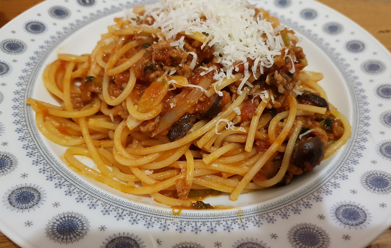 마른 토마토와 파슬리로 만든 파스타(위) 심심하면 등장하는 효자 메뉴 미트소스 스파게티(아래).