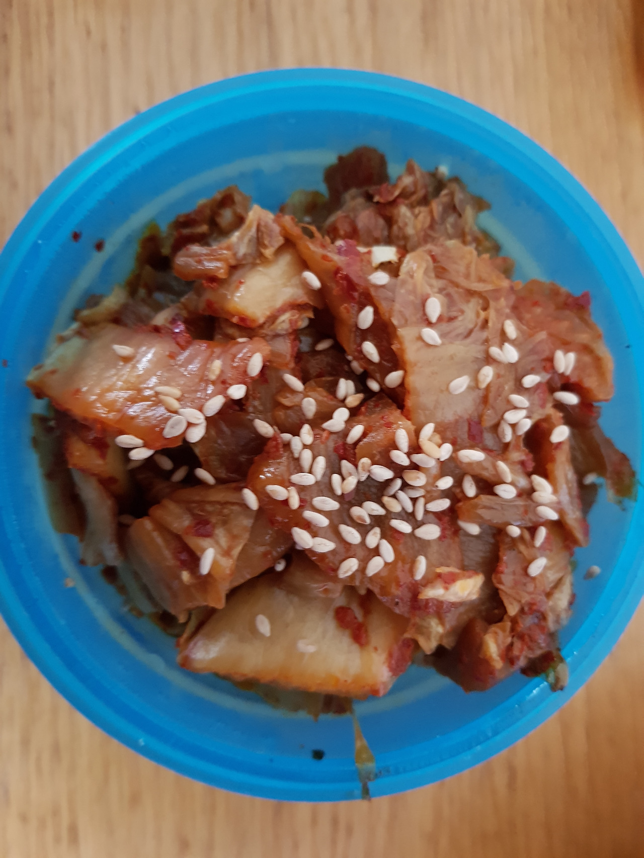 내친김에 올해 첫 김치도 담갔다. 실패. 절임 과정에서 제대로 절여지지 않아 배추가 뻣뻣했다. 고춧가루도 안 받쳐줬다. 맵기만 하고 색깔도 어두웠다. 사놓은 젓갈이 없어서 아시아 마켓에서 샀던 피시 소스를 넣었는데 역부족. 그래도 희망을 잃지 않고 잘 버무려서 발코니에 며칠 두었더니 적당히 익었다. 김치란 게 그렇다. 시간이 해결해준다. 코로나도 그렇고 우리 인생도 그렇다. 어떤 상황에서도 나름대로 익어가더라. 익으면 또 맛이 나고. 때깔은 안 나지만 뭐 어떤가. 볶아서도 먹고 찌개로도 잘 먹고 있다.