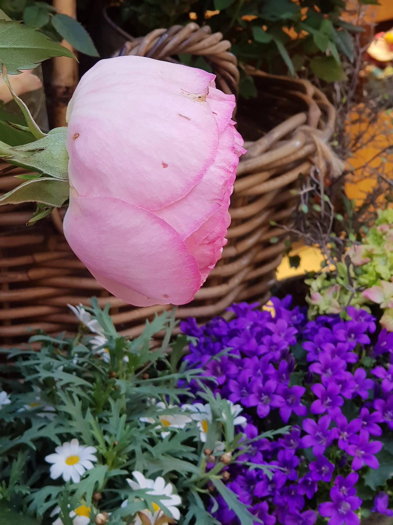 빅투알리엔 마켓과 뮌헨 시청사 앞도 예전만큼은 아니지만 사람들의 발길로 분주했다. 시청사에서 오데온 광장으로 가는 길에도절반 정도의 가게들이 문을 열었다. 특히 반가웠던 건 꽃가게! 시청사를 오른쪽에 끼고 오데온 광장으로 들어가는 바인 슈트라세 Weinstrasse 오른쪽 작은 서점 옆에 있다. 꽃집을 드나드는 사람도 많고, 나처럼 꽃집 앞에서 꽃을 감상하는 사람도 있었다. 꼭 사고 싶었던 진홍빛 부겐베리아 꽃화분(39€)은 눈으로만 찜해두었다.