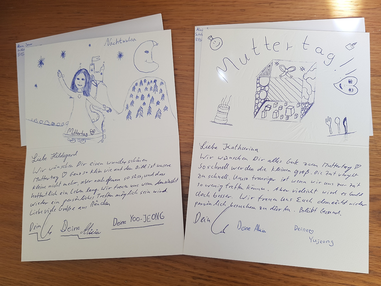 후겐두벨 서점에도들렀다. 오픈 시간은 오후 6시까지. 코로나 이전에는 저녁 9시까지 문을 열었는데. 입구에는 매니저가 아이패드를 들고 손님 수를 체크하고 있었다. 입구에는 손 세정제. 넓은 서점 안은 손님이 열 명도 채 안 되었다. 아이는 책 1권. 나는 청소년용 고전 두 권을 골랐다. <돈키호테>와 <모비딕>. 이번 주 일요일 어머니날에 두 분 시어머니께 보내드릴 카드도 두 개 샀다. 매장 문을 닫는다는 안내 방송 때문에 급하게 고른 카드가 하필이면 생일 축하 카드라니. 오래전 만들었던 남편과 아이의 달력 사진을 문구 위에 오려 붙였더니 세상에 하나 뿐인 빈티지 카드가 되었다.