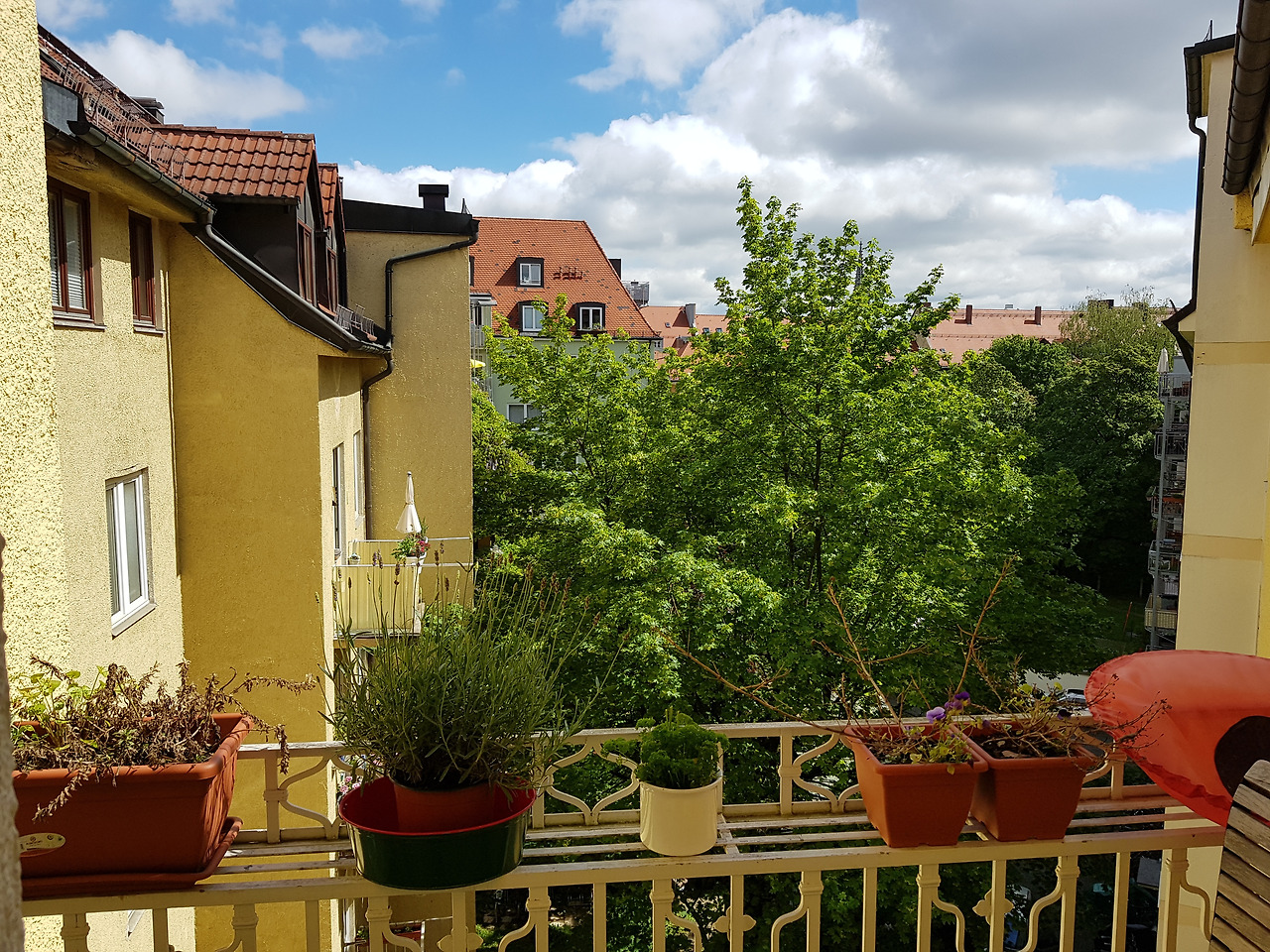 우리 건물 엘리베이터는 반층마다 선다. 불편하다. 복도 계단은 반들반들한 나무인데 넓고 단차가 적다. 100년도 넘은 건물인데도 우중충하지 않다. 건물 외벽은 노란색. 우리 집 발코니만 집 뒤편으로 나 있다. 이웃 건물들 안마당과 우리 건물 뒤뜰도 보이고, 부엌문 밖이 항상 푸른 것도 좋다. 겨울에는 앙상한 나뭇가지 사이로 뮌헨의 전통 시장 아우 둘트가 열리는 마리아힐프 성당 지붕도 보이고, 때로는 성당의 종소리도 들린다.