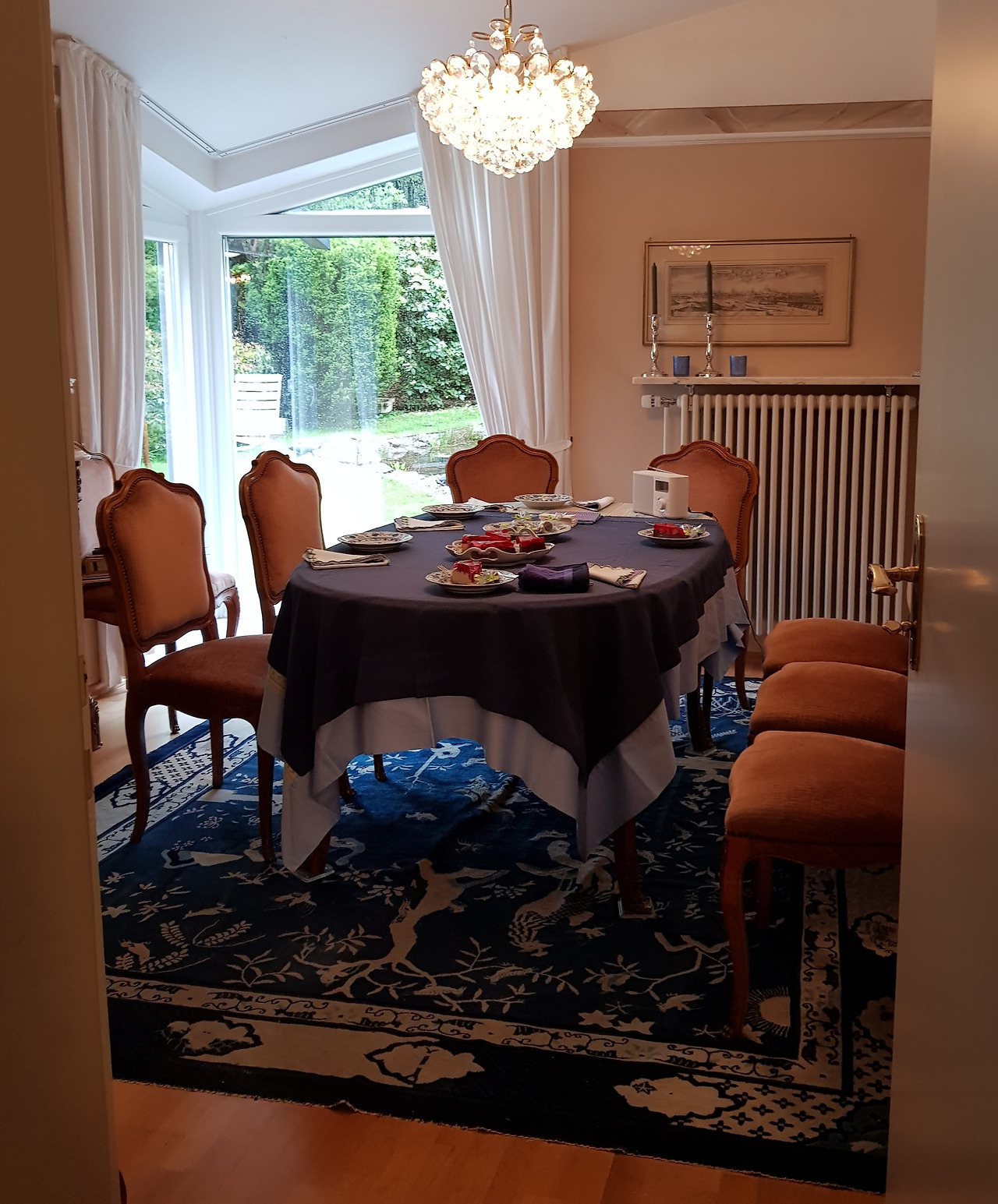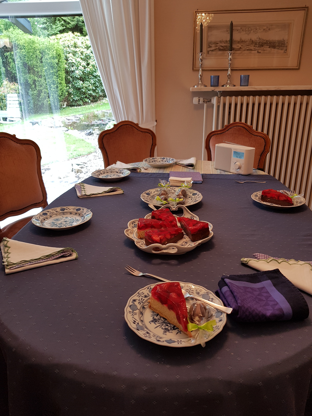 부모님 댁에는 오후 3시에 도착. 쿠헨과 함께 커피를 마시고, 6시 30분에 저녁을 그리고 8시에 뮌헨으로 돌아왔다.시누이 바바라 차로 뮌헨을 출발하자마자 슈탄베르크에 도착하기도 전에 우레 같은 소낙비가 쏟아졌다. 도착하니 어머니의 가든도 물기가 촉촉했다. 우박도 왔던가 보다. 골목에는 꽃잎과 나뭇잎들이 많이 떨어졌다. 해가 나서 어머니의 정원에 앉아보기를 기대했는데 실망이 컸다. 모처럼 정원일을 해보려고 밀짚 모자까지 챙겼건만. 아이를위해 우편으로 보내주신 <톰 소여의 모험>과 <허클베리 핀>도 들고 가서 감사 인사를 했다.어머니께 집에 손 볼 건 없냐고 여쭈니 주방 후드에 기름때가 많아고민이라고 하셨다. 남편을 부엌으로 불러 바로 해결해 드렸다.해결사인 막내아들은 이럴 때 존재감이 빛나는 법.