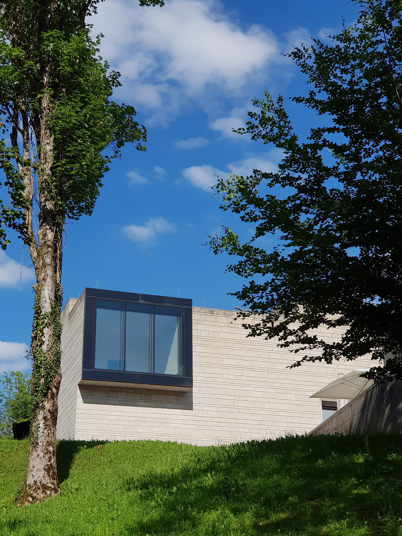 프란츠 마르크 뮤지엄(위). 위의 두 건물은 실제로는 붙어있다. 전시실에서 바라본 뮤지엄 카페와 뮤지엄 부근 언덕에서 바라본 호수(아래)