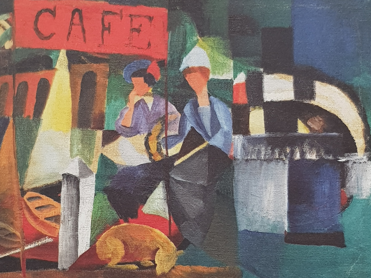 하자면 로또에 걸릴 가능성과 맞먹겠다. 마르크와 마케는 같은 청기사파 회원이었으니 잘하면 마케 그림도 몇 점 볼 수 있겠다는 기대는 있었다. 이번 특별 전시회 포스터가 마케의 그림 <호숫가 카페>였기 때문이다. 그 포스터를 본 건 뮌터 하우스가 있는 무르나우에 갔을 때였다.무르나우 시내에서 마케를만나다니. 그 참을 수 없는 기쁨이라니!
