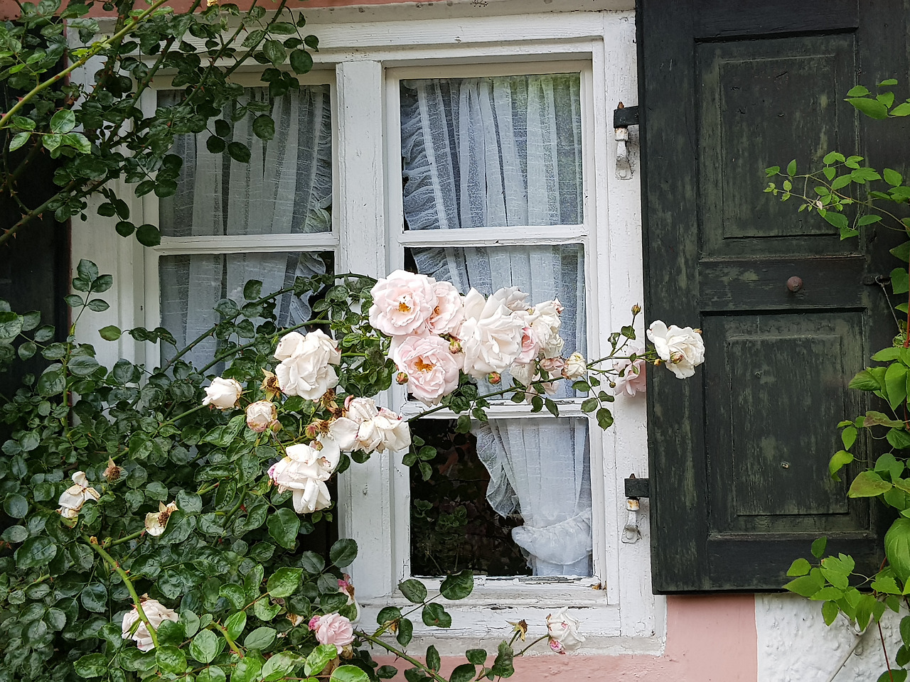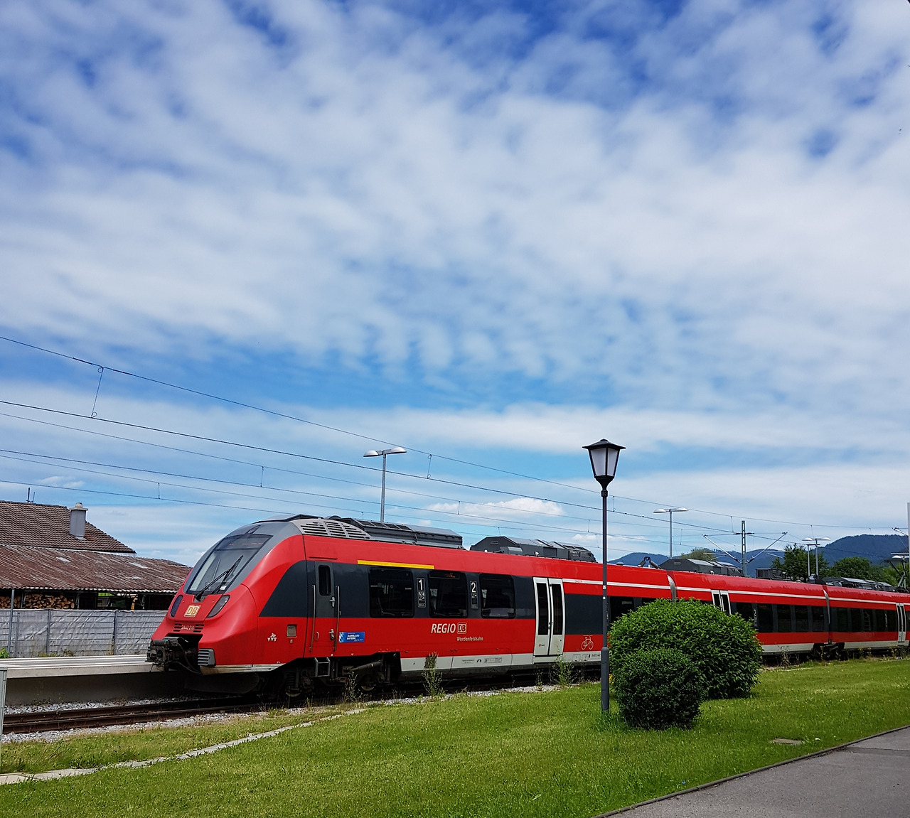 저 빨간 기차를 타고 갔다(위). Kochel 역에서 프란츠 마르크 뮤지엄으로 가는 길의 장미들(아래).