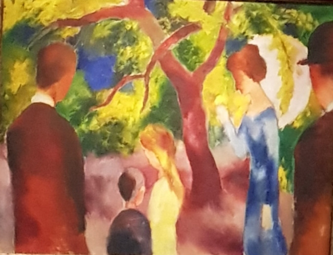 포스터 그림 마케의 <호숫가 카페>는 기대 이상이었다. 왜 아니겠는가. 카페 그림을 하나도 아니고 두 점이나 봤으니.그럼에도 이번 관람의 최대 수확은 <큰 산책로>였다. 마케의 산책로 그림에는 여러 종류가 있는데, 이 그림이 가장와 닿은 것은 실제그림 앞에 선 감동 때문일 것이다. 빨강과 노랑과 초록과 블루의 향연. 저녁 무렵 여름날의 산책. 블루가 저렇게 고귀한 색이었나. 마케의 블루에 반해버린 유월의 마지막 날. 그리고다음날 칠월이왔다.