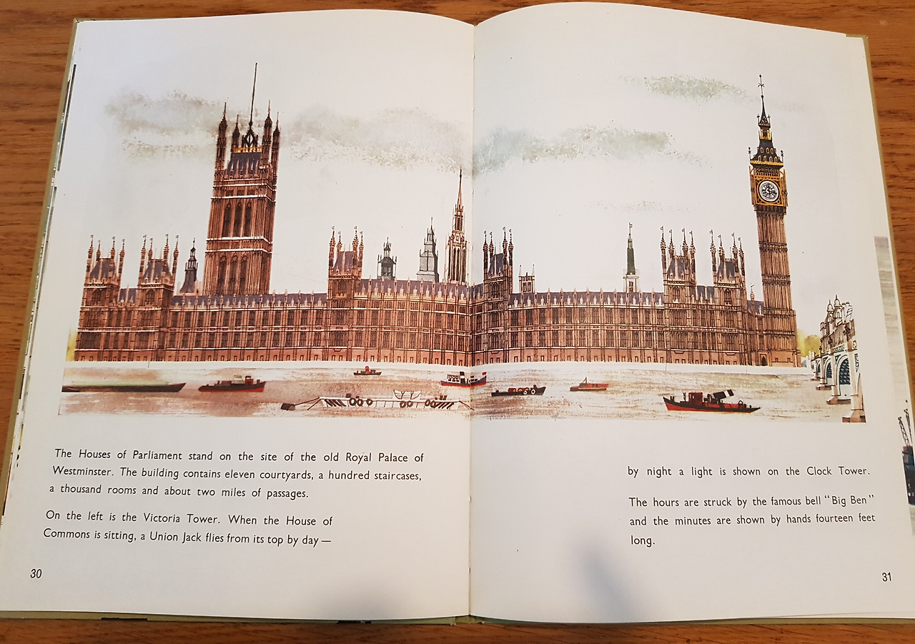아이는 학교에서 영국식 영어를 배운다. 헌책방에서 득템한 오래된 런던 소개 책자. 가격은 15유로(초판 1959년/재판 1965년).