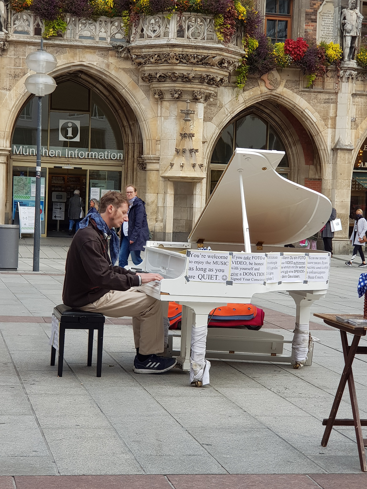 코로나는 여전하지만 뮌헨 시청의 시계탑 인형은 춤추고, 거리의 피아니스트는 연주한다.