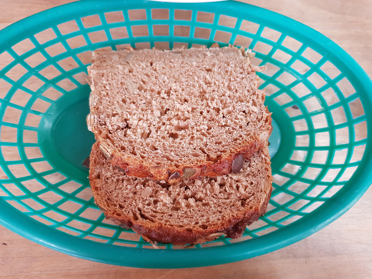 우리 카페에서 사용하는 빵들은 보기만 해도 흐뭇하다. 긴 바게트, 짧은 바게트, 위에 씨앗과 곡물이 빼곡하게 박힌 바게트, 건포도나 올리브가 들어간 빵, 이태리 빵 치아바타, 브렛첼, 토스트 식빵, 통밀빵인 폴콘 브로트, 검은 빵 바우엔 브로트, 부채처럼 넓은 브루스께타용 이태리 빵... 독일의 <정부 빵 연구소> 자료에 따르면 독일에는 3,200 종류의 빵이 있다고 한다. 거의 대부분 정백하지 않은 통밀을 사용하고 있다고. 독일빵이 건강식인 이유가 여기에 있겠다. 요즘 우리 아이도 간식 도시락으로 시골풍의 검은 빵 바우엔 브로트 Bauernbrot를 잘라 버터를 바른 후 살라미나 치즈를 끼워간다. 건강한 게 맛있기도 한 대표적인 사례라 하겠다.